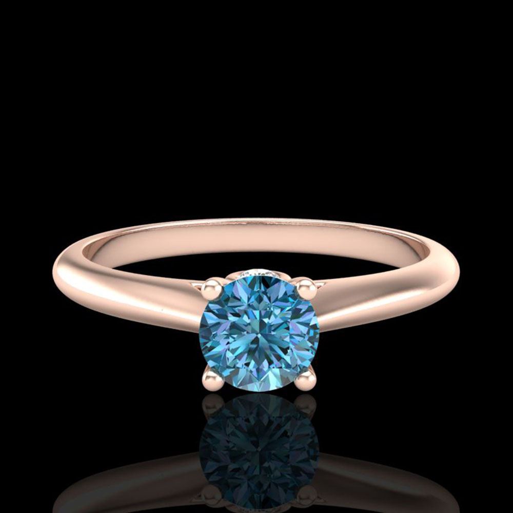 REF-60M2G - SKU: 38182 ---- 0.4 ctw Intense Blue Diamond Engagment Art Deco Ring 18k Rose Gold