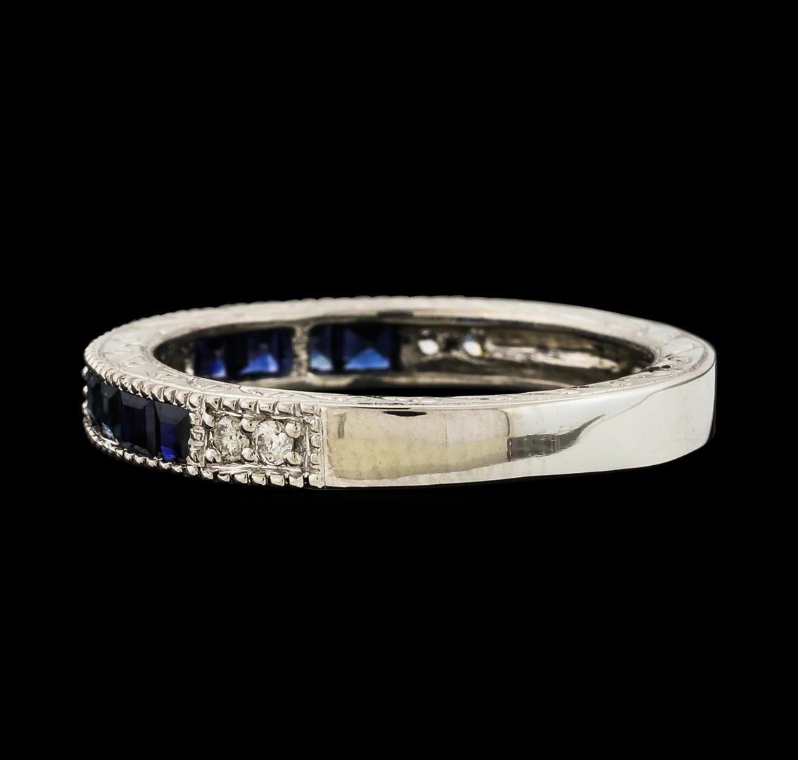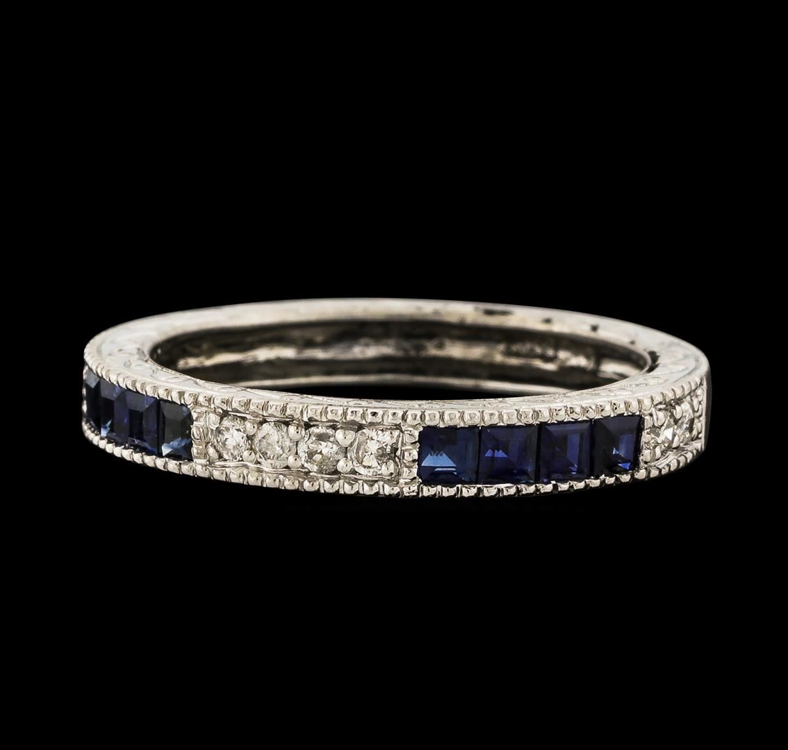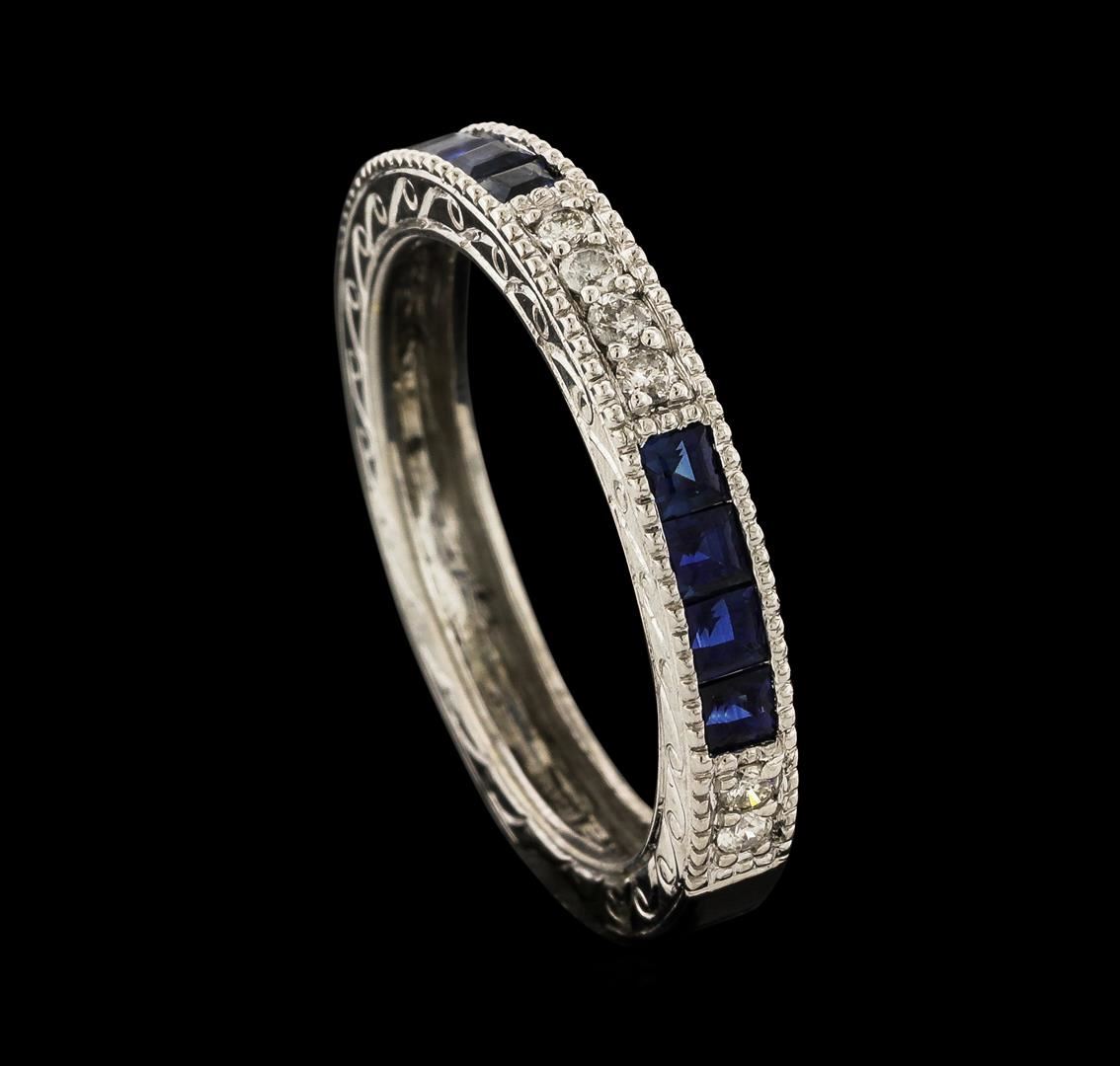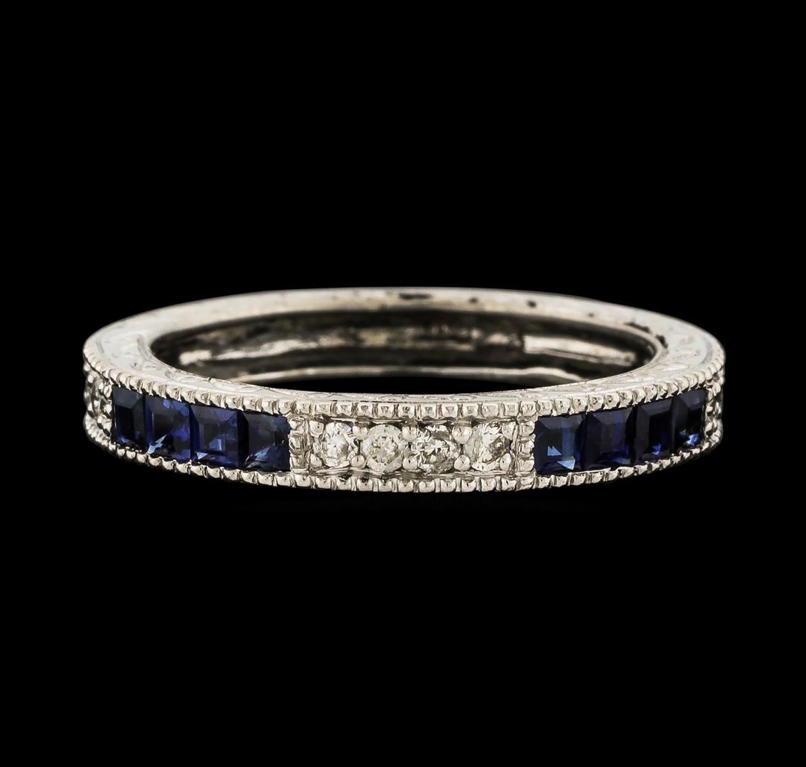 One ring : 14KT white gold weighing 3.30gm containing sapphires with a total weight of 0.40ct and side diamonds weighing 0.15ctw.