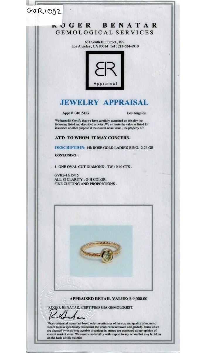 14K ROSE GOLD NATURAL DIAMOND RING:2.26 GRAMS/DIAMOND:0.40CT//#GVR1092