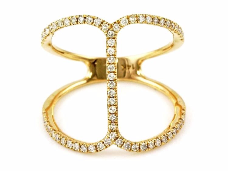 |**Total Carat Weight:0.4|**Clarity:SI2-Si3|**Cut:Very Good|**Setting:Micro Pave Set|**Main Stone:|**MAIN Stone Treatment:Not Enhanced|**Main Stone Color:|**Main Stone Color:Round|**Theme:|**Length Inches:|**Ring Size:7|**Style:Band|**Metal Purity:14k|**Metal:Yellow Gold|**Gold Weight:2.70g|**Dimension:|**Diamond Color:G-H|**Sizable:Yes|**Condition A brand-new, unused, and unworn item (including handmade items) in the original packaging (such as the original box or bag) and/or with the original tags attached|**Remarks: Colorless Diamonds, With no visible inclusions to the unaided eye. 0.40ct - 65pcs. - 0.8mm - Round Diamonds (Not Enhanced) SETTING: Micro Pave Set. BAND WIDTH: 3.5mm. RING HEIGHT: 19.5mm, DESIGN: Geometric Bar, WEIGHT OF GOLD: 2.70g 14K Solid Yellow Gold - ("14K" Metal Stamp)