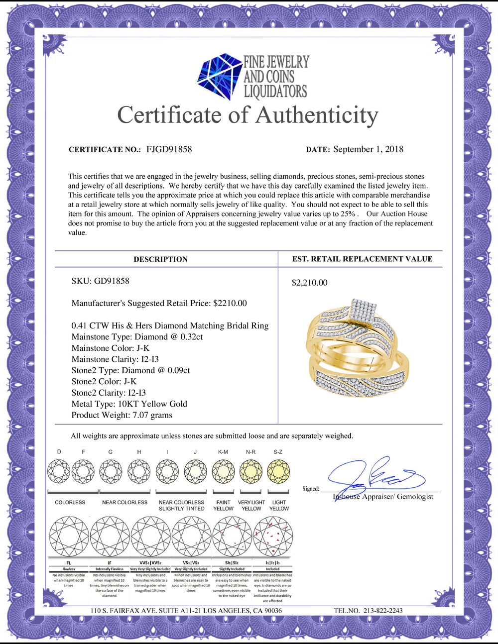 REF-56X2Y- SKU: GD91858 ---- 0.41 CTW His & Hers Diamond Matching Bridal Ring 10KT Yellow Gold