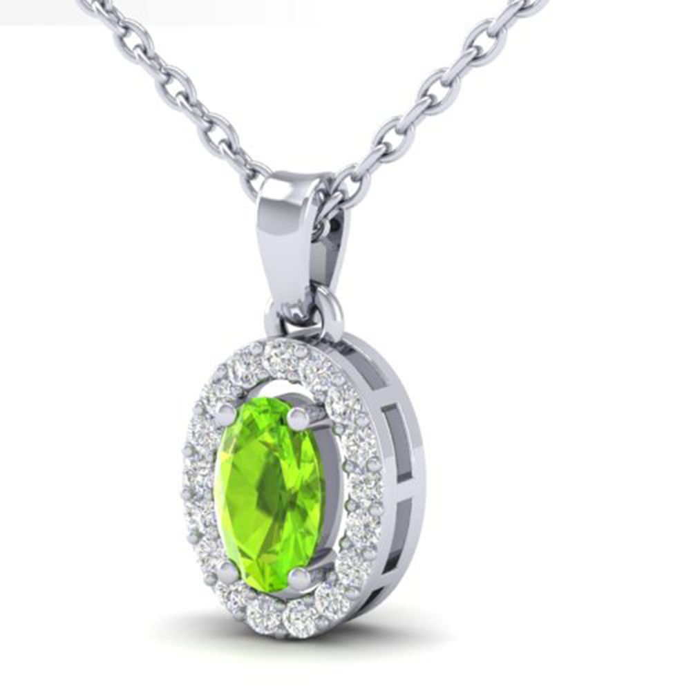 REF-23N2F - SKU: 21323 ---- 0.41 ctw Peridot & Micro Pave VS/SI Diamond Necklace 18k White Gold