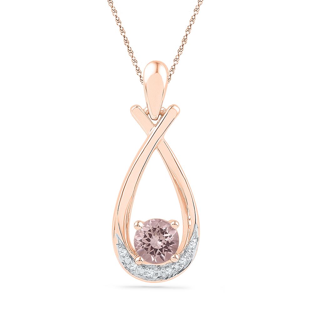 REF-22M4H- SKU: GD101322 ---- 0.42 CTW Created Morganite Solitaire Diamond Teardrop Pendant 10KT Rose Gold