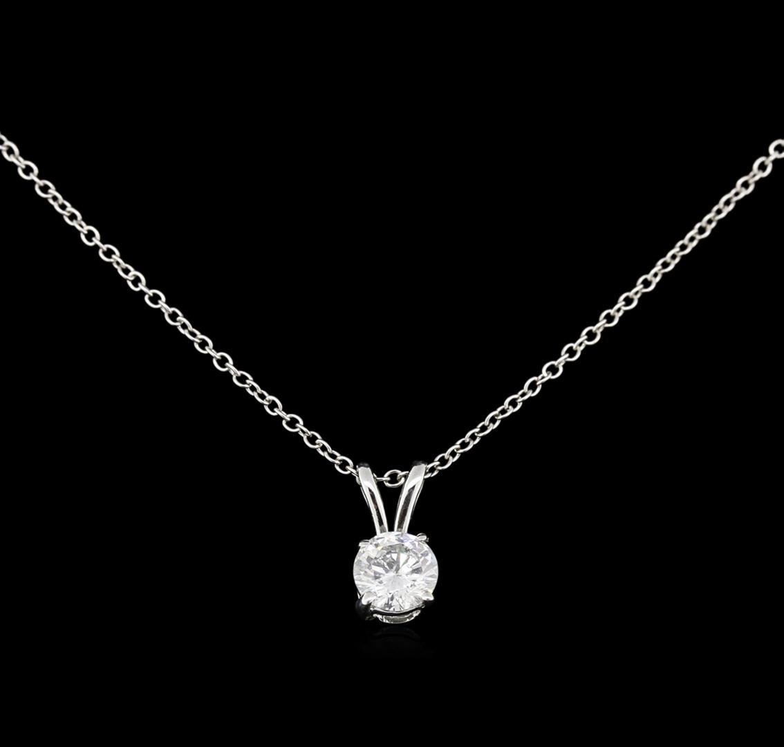 One solitaire pendant with chain featuring: 14KT white gold weighing 1.43 grams containing one diamond with a total weight of 0.42ct.