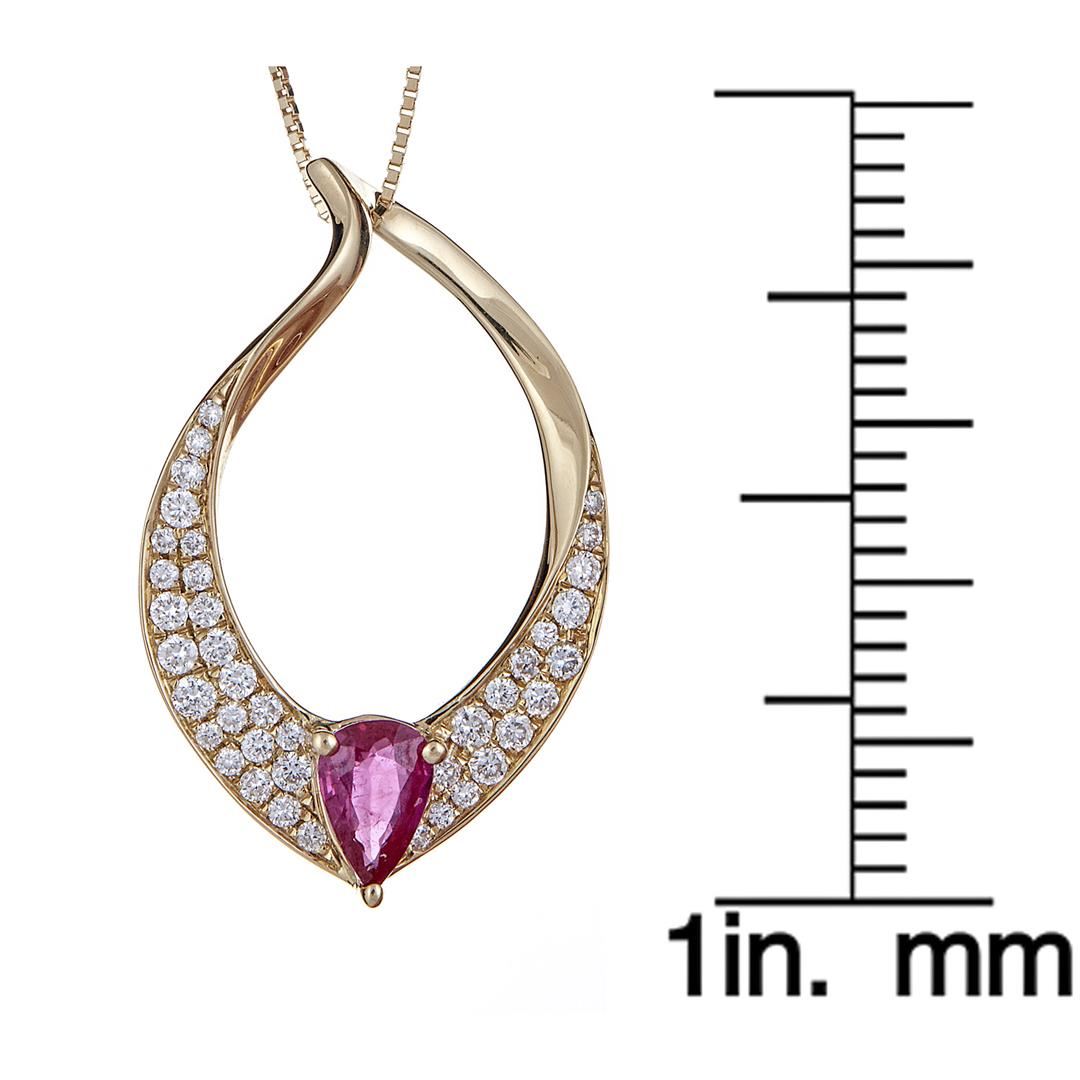 One pendant with chain featuring: 18KT yellow gold weighing 1.67 grams containing one pear cut ruby with a total weight of 0.42 ct and diamonds weighing a total of 0.25 ctw.