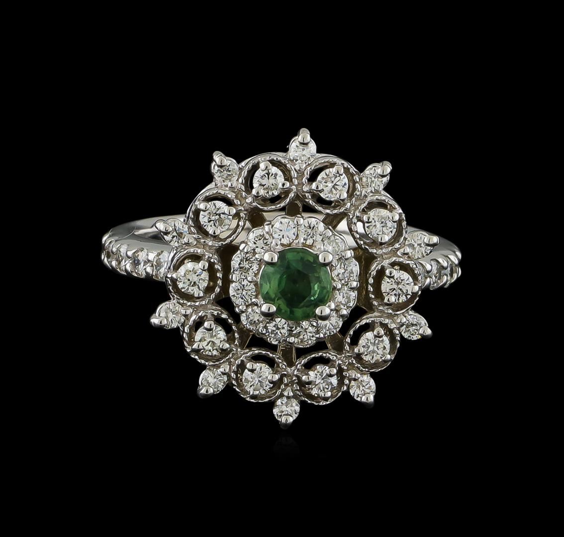 One Ring featuring: 14KT White Gold weighing 5.96 grams containing one Sapphire center stone with a total weight of 0.42ct and Diamonds with a total weight of 0.86ct.