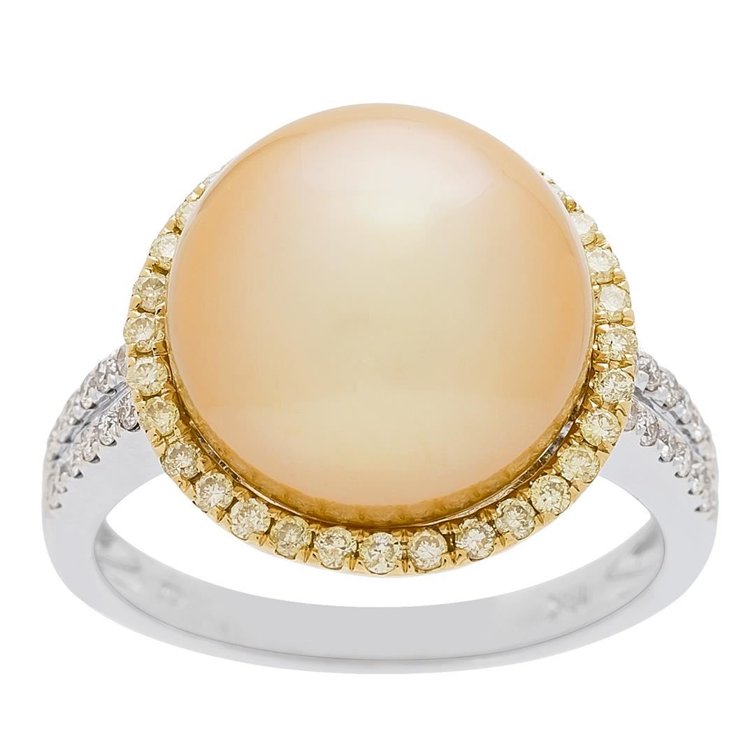 One lady's ring featuring: 18KT white and yellow gold weighing 3.40 grams containing one pearl, yellow diamonds weighing 0.26ctw and white diamons weighing 0.16ctw.