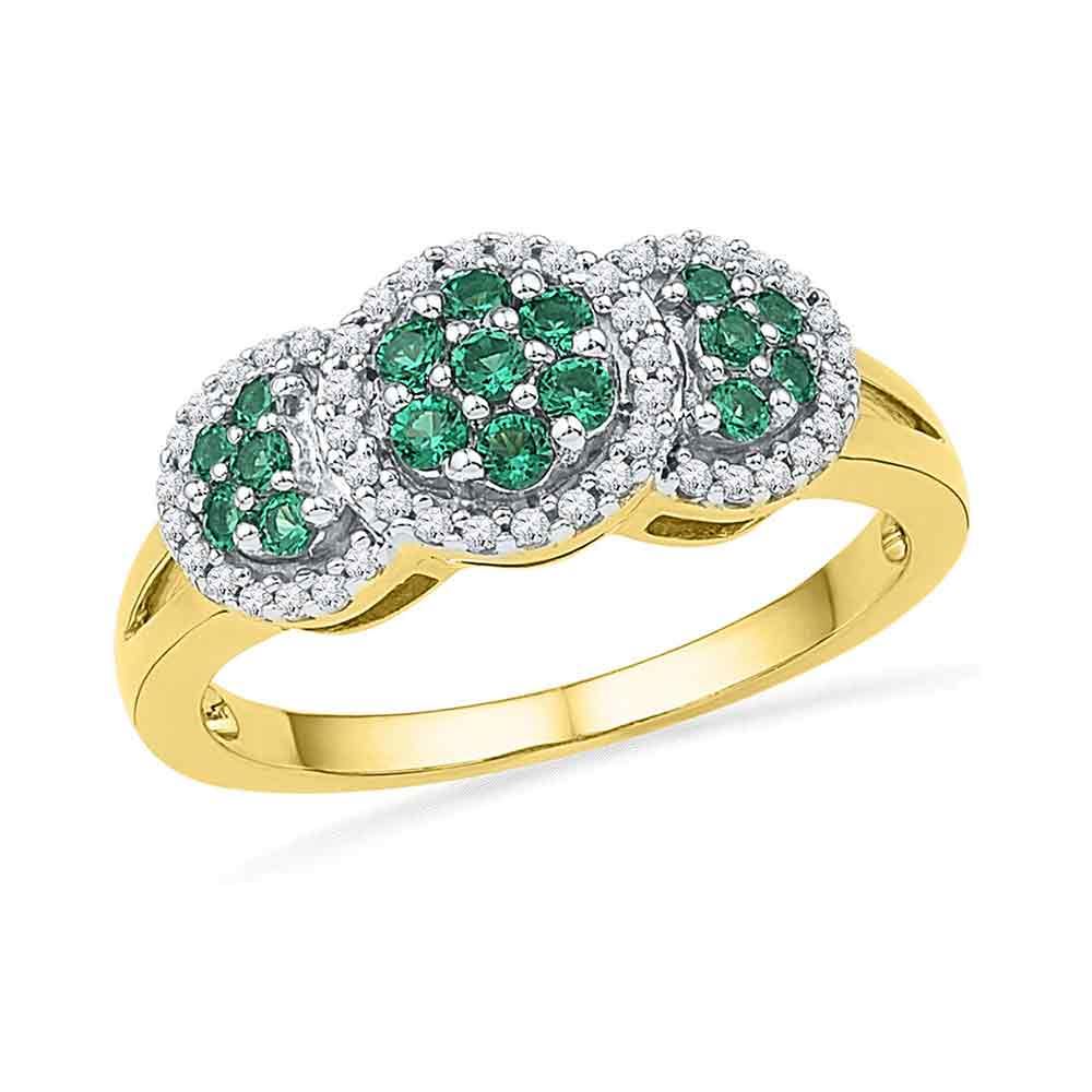 REF-26K9W- SKU: GD100186 ---- 0.43 CTW Created Emerald Diamond Cluster Ring 10KT Yellow Gold