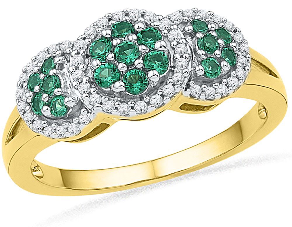 REF-35A9N ---- 0.43 CTW Lab-Created Emerald Diamond Cluster Ring 10K Yellow Gold - SKU: GD100186