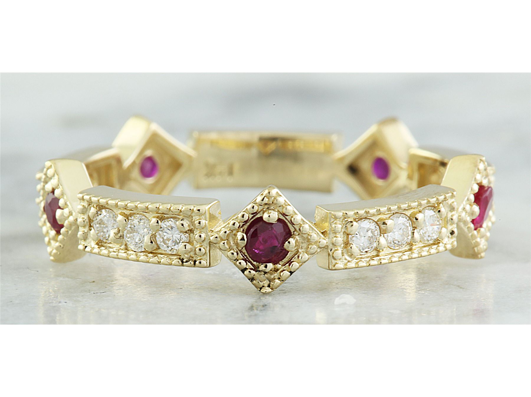 0.43 CTW Ruby 18K Yellow Gold Diamond Ring