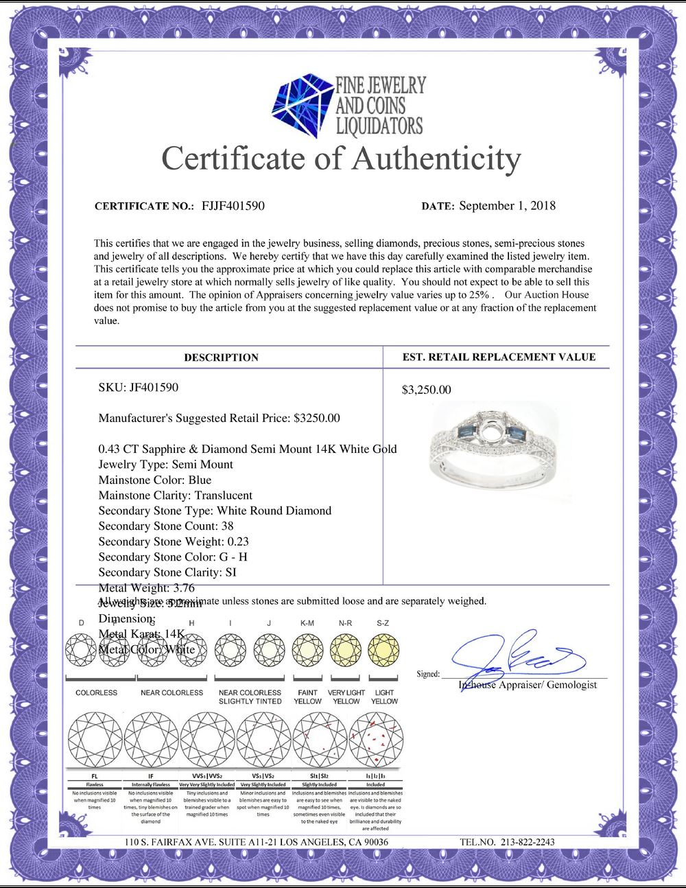 REF-41X3R - JF401590 ---- 0.43 CTW Sapphire & White Round Diamond Semi Mount Ring 14K White Gold