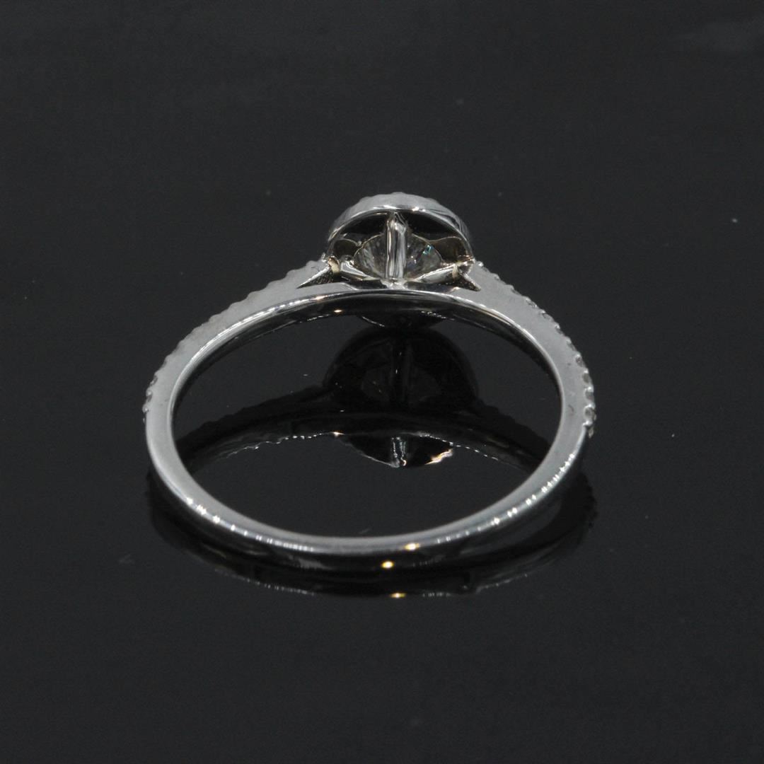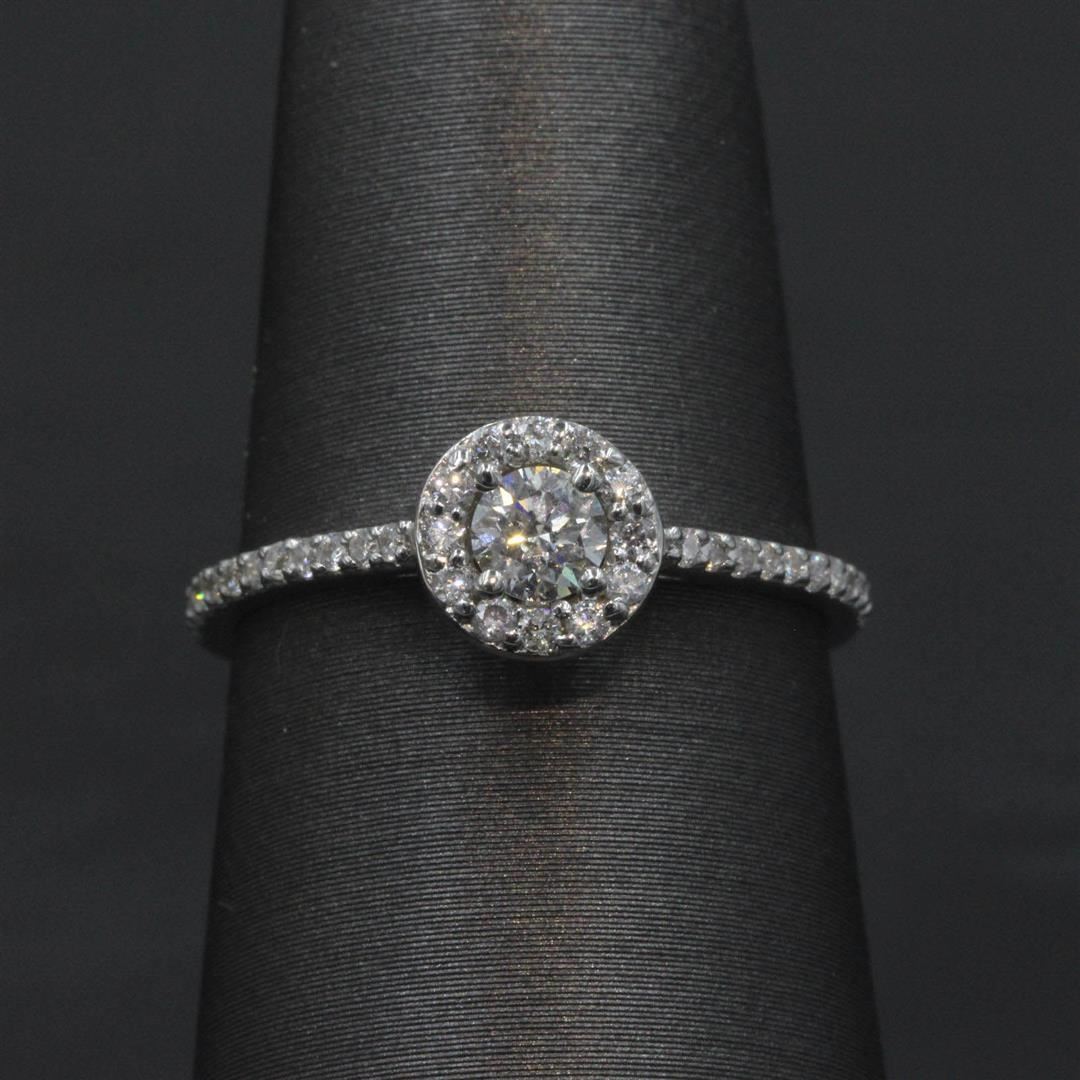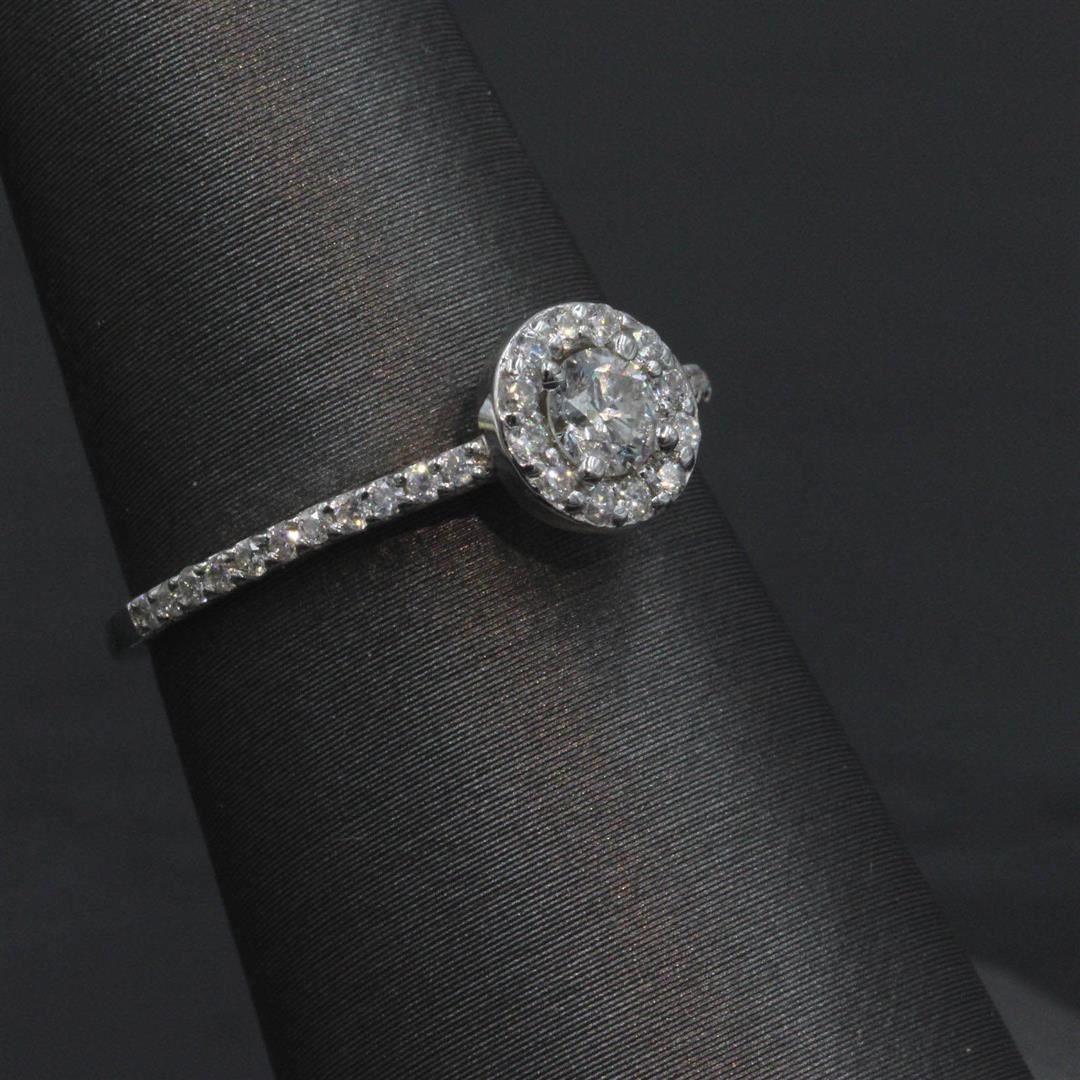 One lady's ring featuring: 14KT white gold weighing 1.81 grams containing one center diamond weighing 0.22ct and side diamonds weighing 0.21ctw. The center diamond is round brilliant cut with G-H color and SI1-SI2 clarity.