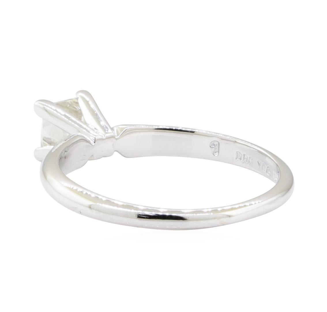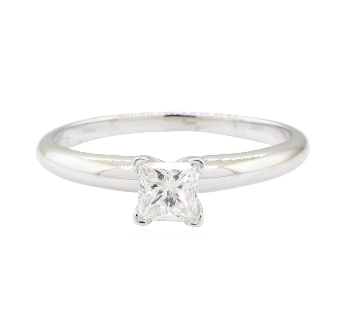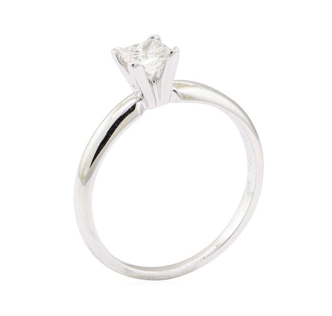 One solitaire ring featuring: 14KT white gold weighing 1.9 grams containing one princess cut diamond weighing 0.43ct.