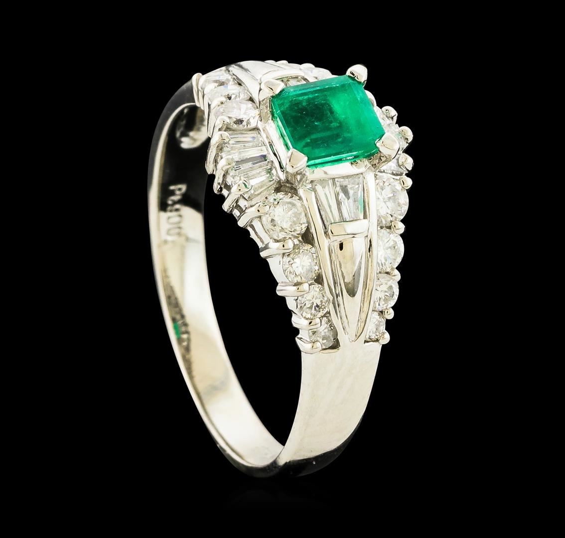 One ring featuring: Platinum containing Emerald with a total weight of 0.43ct and Diamonds with a total weight of 0.63ct. Total Weight of Ring: 4.4 grams.