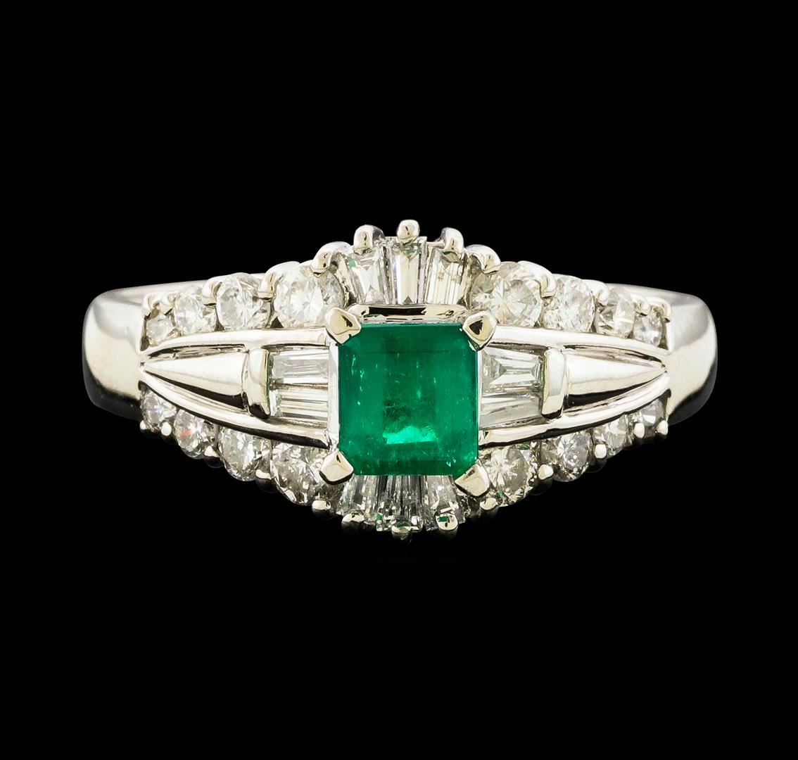 One ring featuring: Platinum containing Emerald with a total weight of 0.43ct and Diamonds with a total weight of 0.63ct. Total Weight of Ring: 4.4 grams.