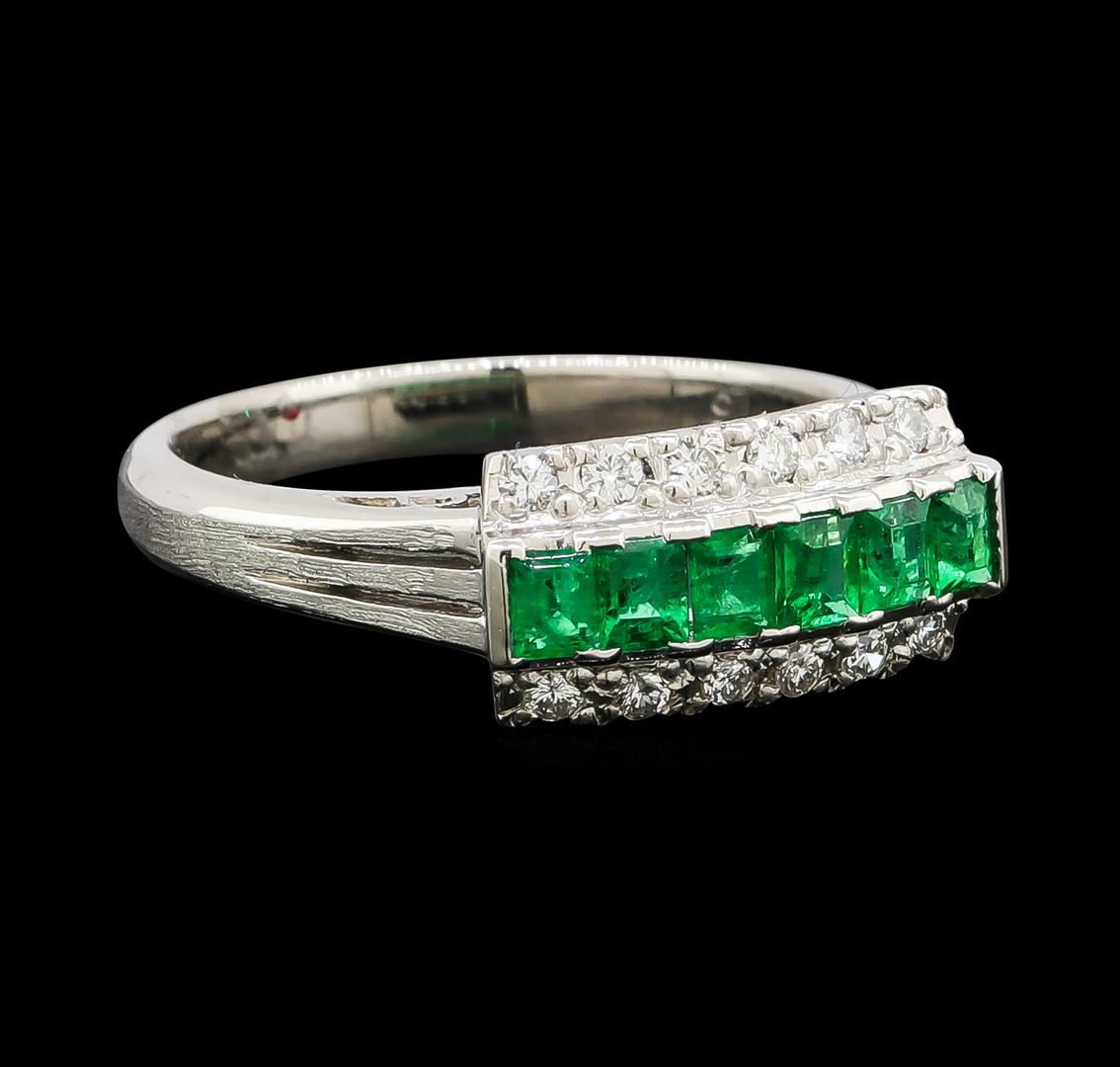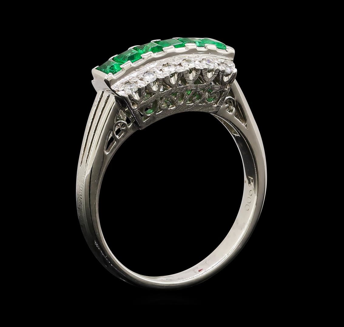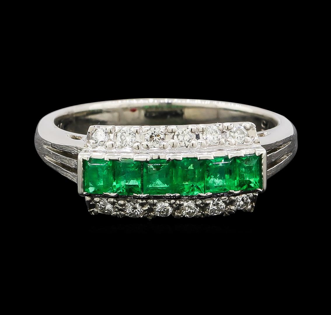 One ring featuring: Platinum containing Emerald with a total weight of 0.43ct and Diamonds with a total weight of 0.15ct. Total Weight of Ring: 5.6 grams.