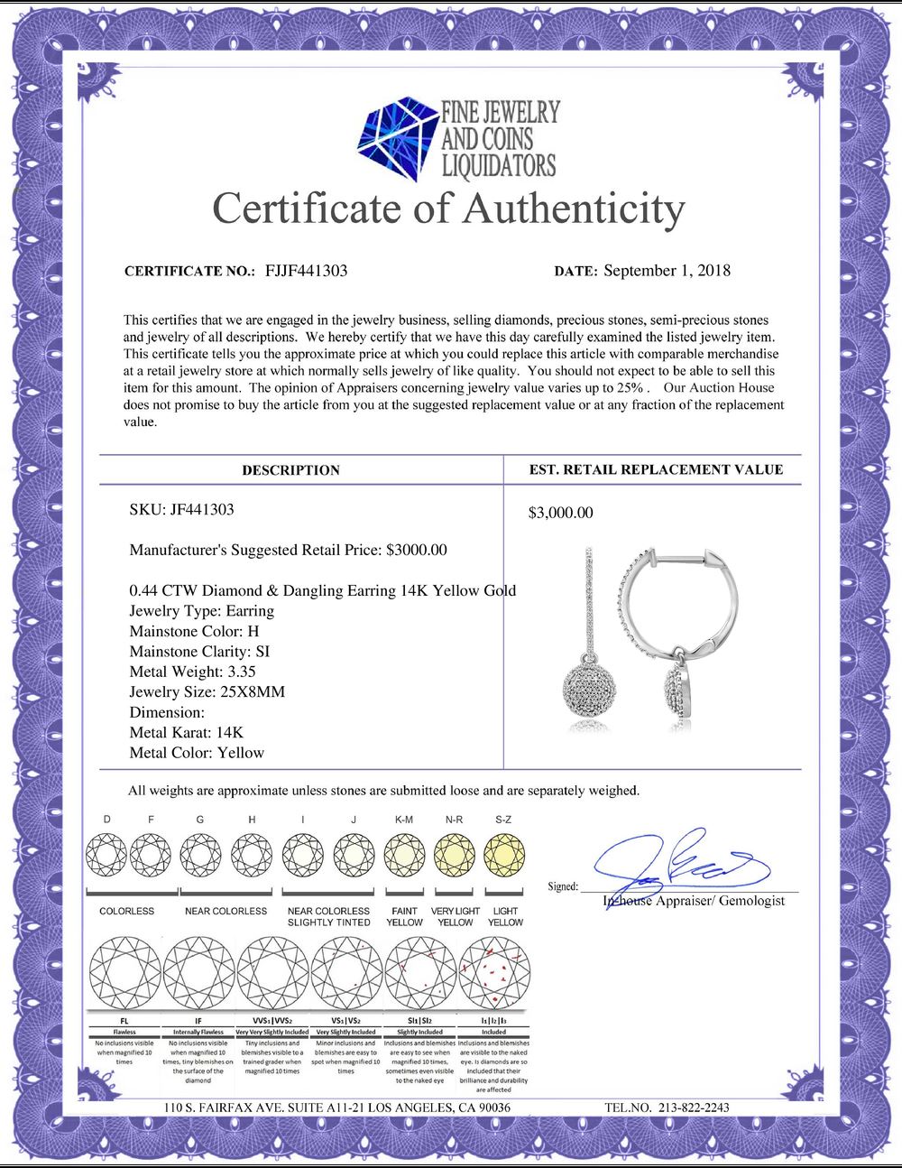 REF-37N4Y - JF441303 ---- 0.44 CTW White Round Diamond Earring 14K Yellow Gold
