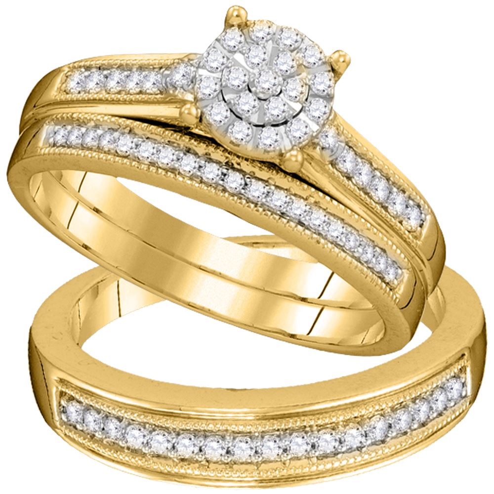 REF-57M2H- SKU: GD105937 ---- 0.44 CTW His & Hers Diamond Cluster Matching Bridal Ring 10KT Yellow Gold