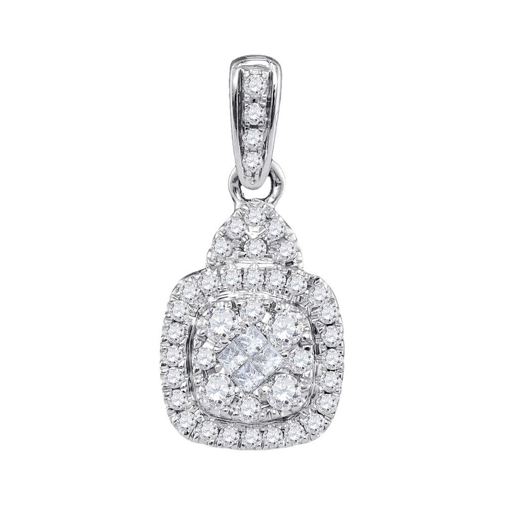 REF-44M9H- SKU: GD99789 ---- 0.44 CTW Princess Diamond Square Cluster Pendant 14KT White Gold