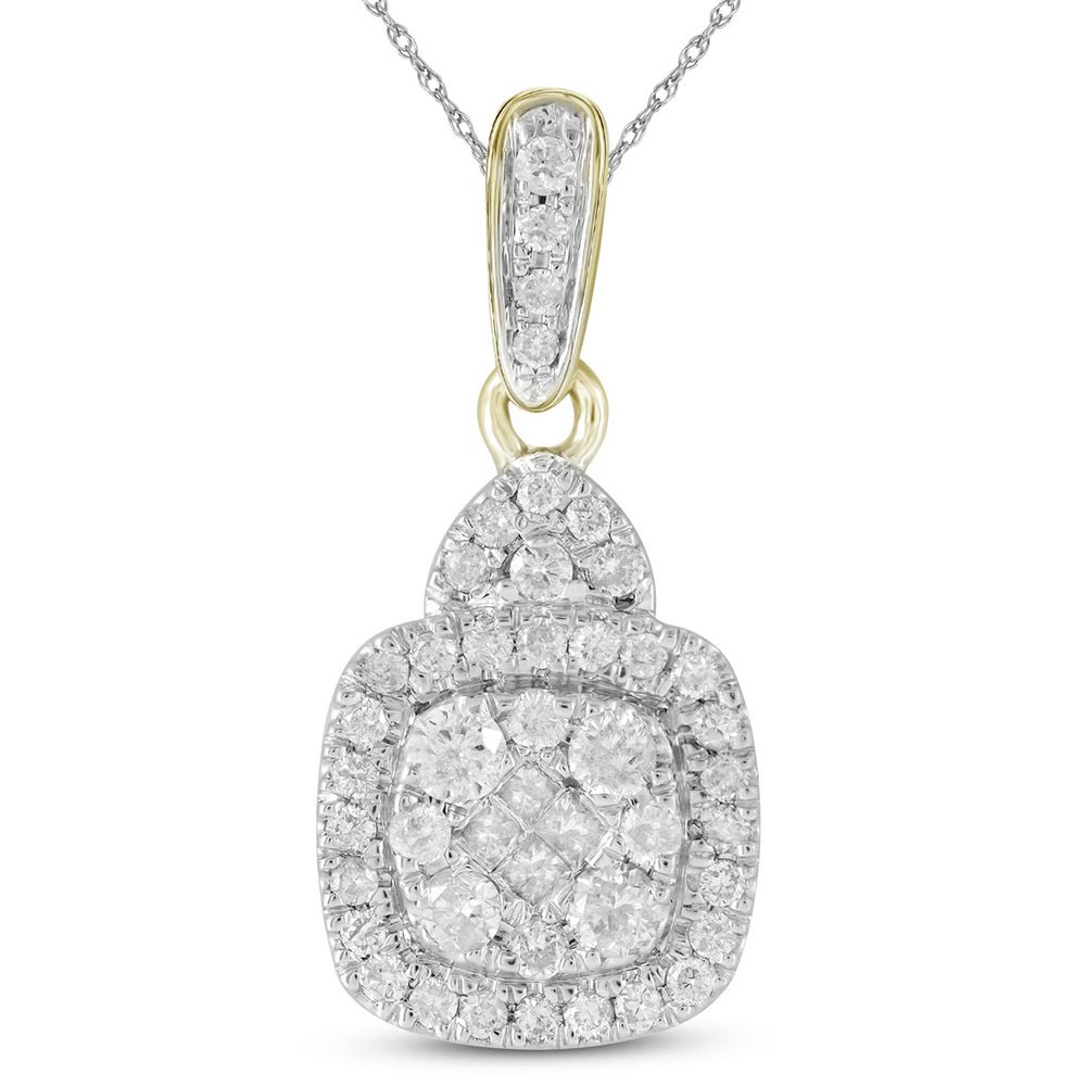 REF-44M9H- SKU: GD99788 ---- 0.44 CTW Princess Diamond Square Cluster Pendant 14KT Yellow Gold