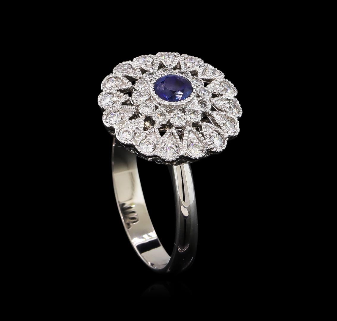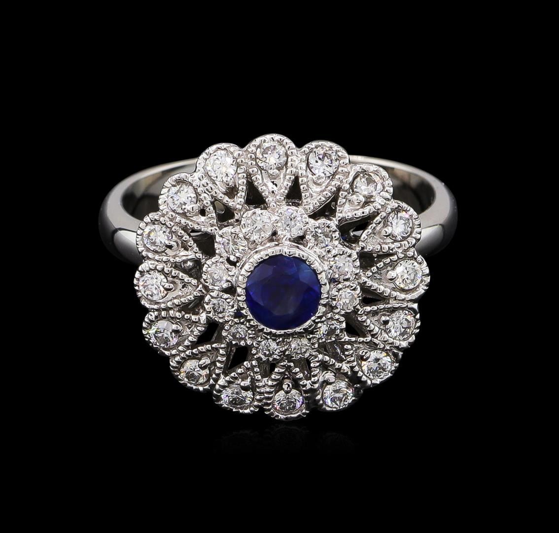 One ring featuring: 14KT white gold weighing 6.10 grams containing one blue sapphire with a total weight of 0.44ct and side diamonds with a total weight of 0.42ct.