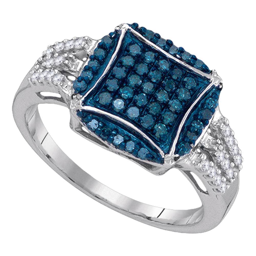 REF-24N2F- SKU: GD89478 ---- 0.45 CTW Blue Color Diamond Circle Cluster Ring 10KT White Gold