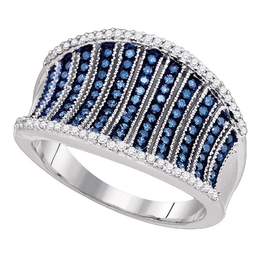 REF-52F4N- SKU: GD81440 ---- 0.45 CTW Blue Color Diamond Cocktail Concave Ring 10KT White Gold