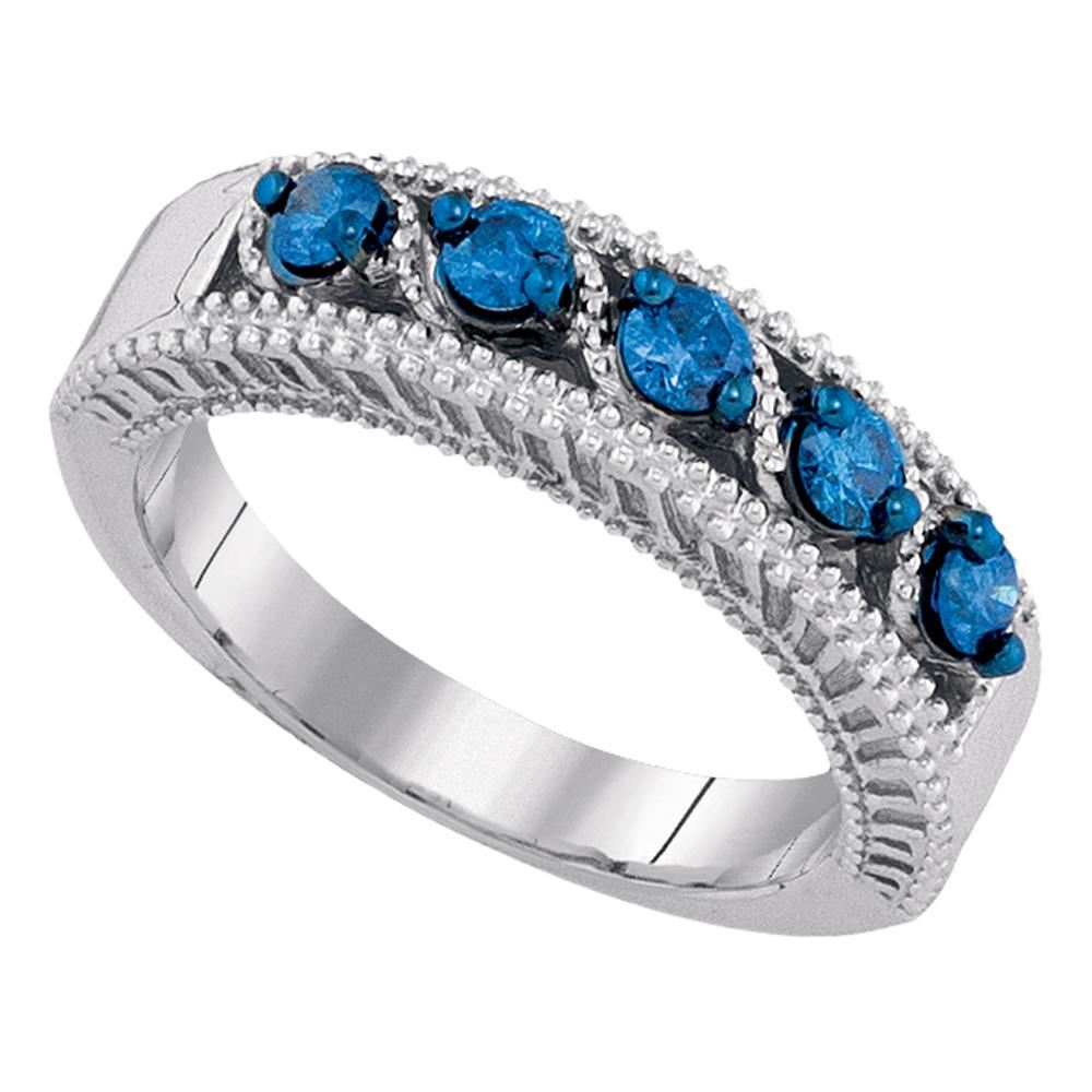 REF-44X9Y- SKU: GD85569 ---- 0.45 CTW Blue Color Diamond Milgrain Ring 10KT White Gold