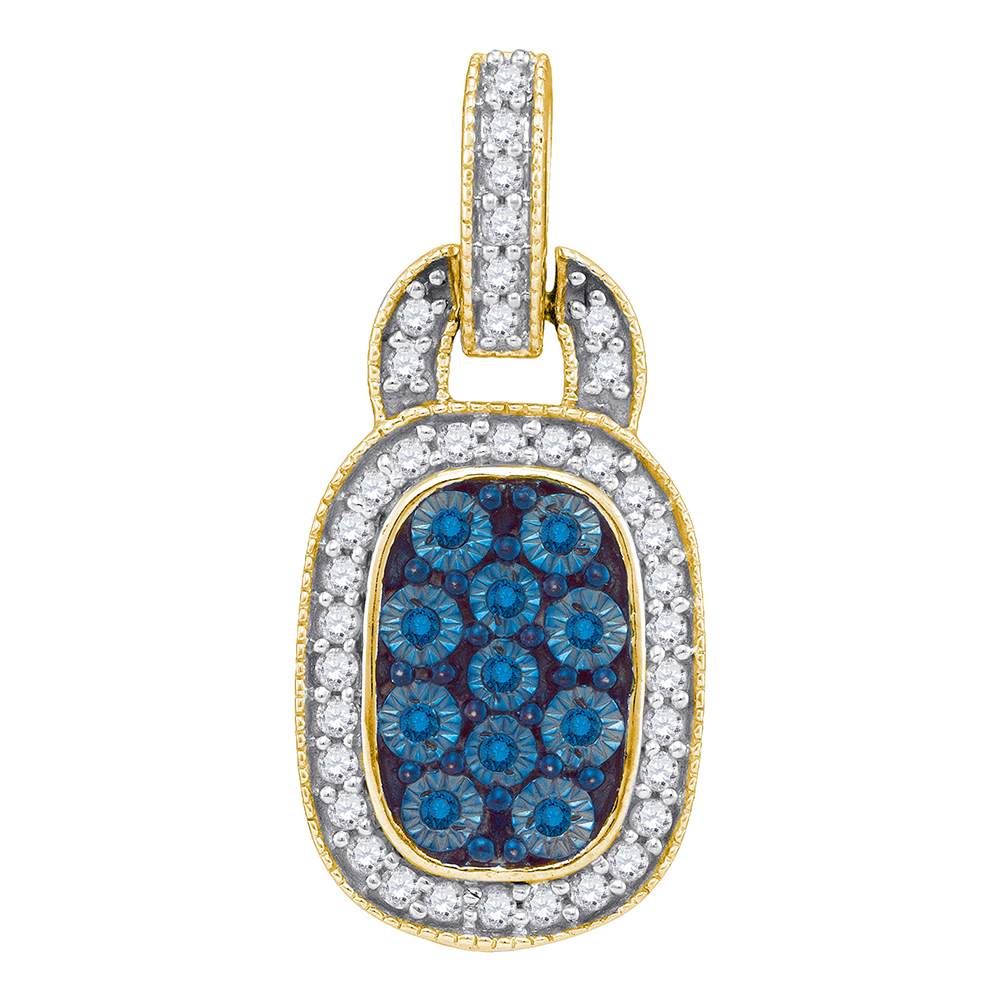 REF-34X4Y- SKU: GD87243 ---- 0.45 CTW Blue Color Diamond Rectangle Cluster Pendant 10KT Yellow Gold