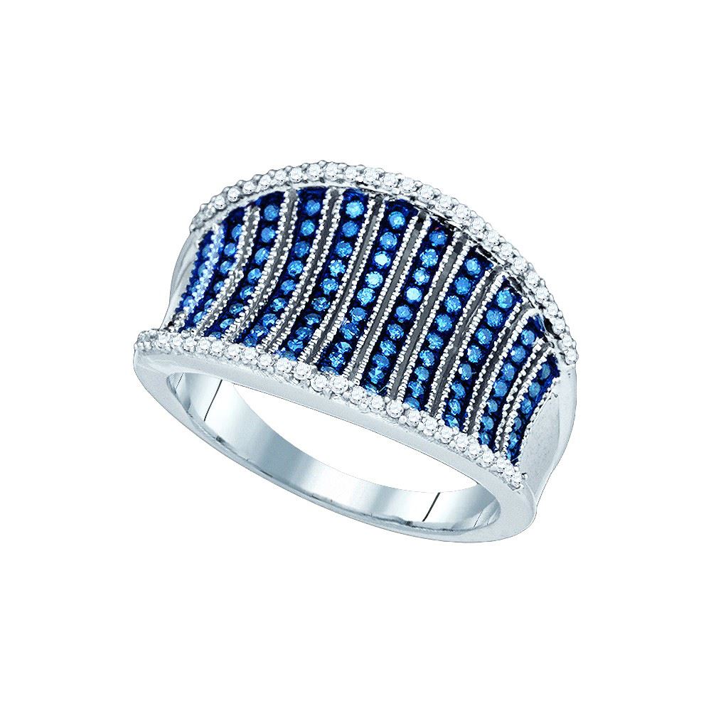 REF-69A9N ---- 0.45 CTW Blue Colored Diamond Cocktail Concave Ring 10K White Gold - SKU: GD81440