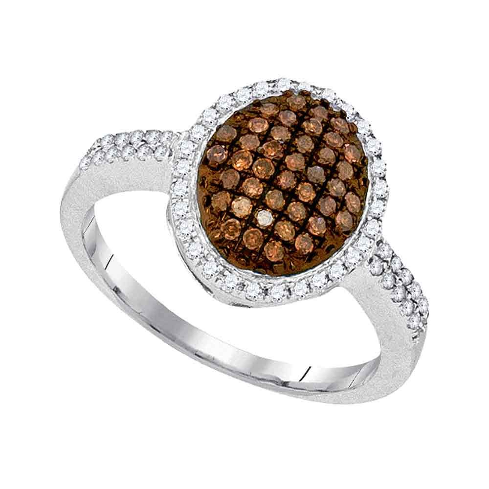 REF-30Y2X- SKU: GD95170 ---- 0.45 CTW Cognac-brown Color Diamond Oval Cluster Ring 10KT White Gold