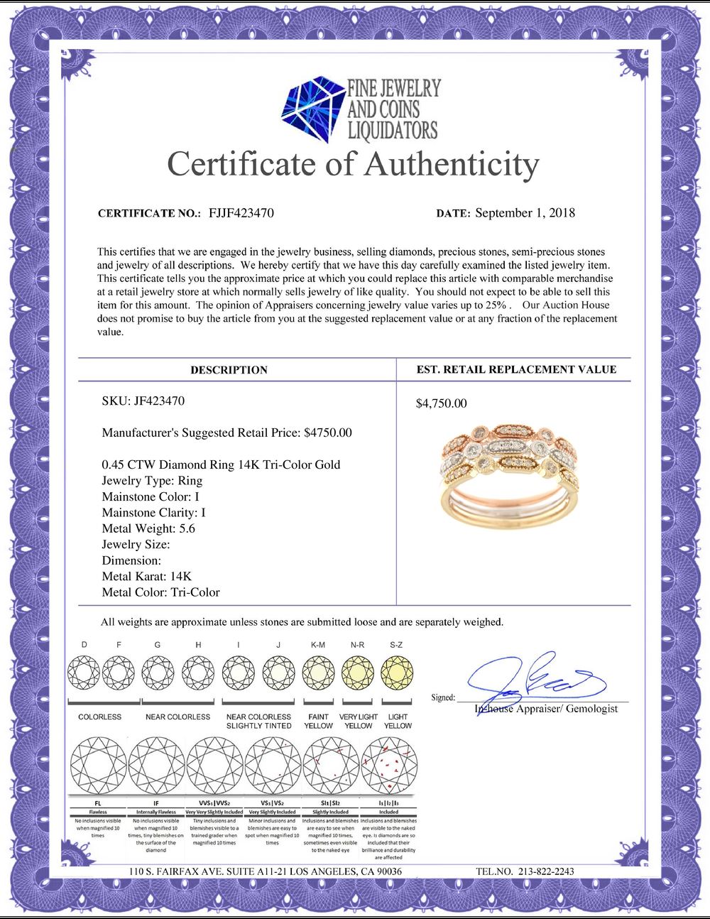 All Gia and EGL Diamonds are subject to availability due to consignors’ terms with us.