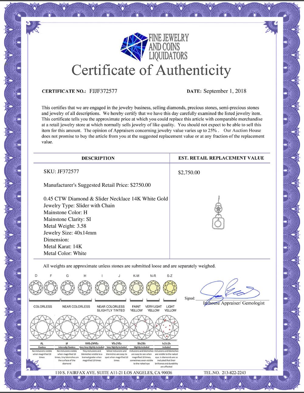 REF-36M3F - JF372577 ---- 0.45 CTW White Round Diamond Necklace 14K White Gold