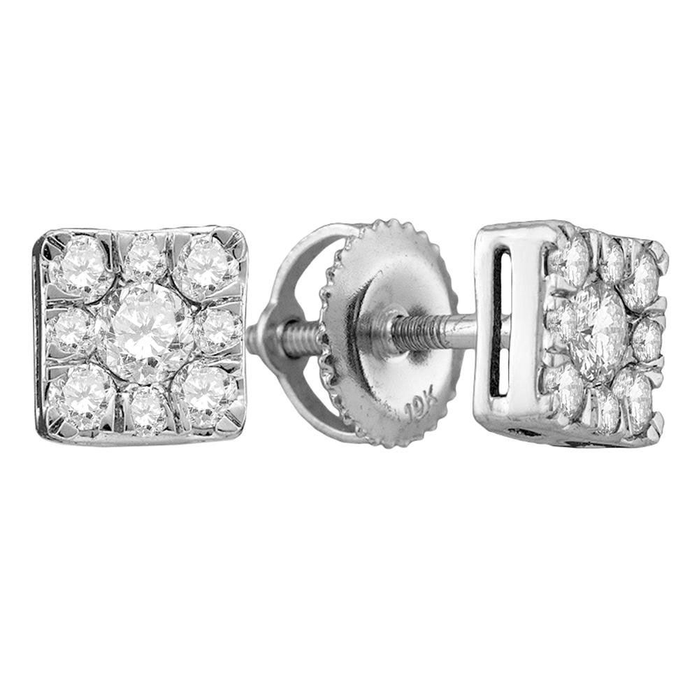 0.45 CTW Diamond Square Cluster Stud Earrings 10kt White Gold - SKU: GD77857