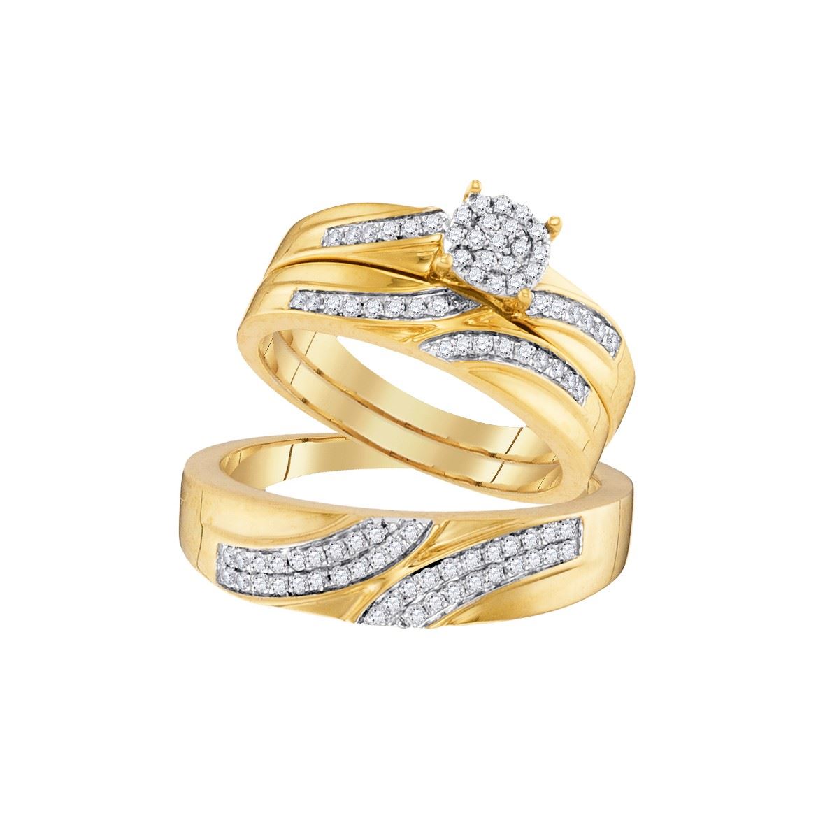 REF-52M4H- SKU: GD94244 ---- 0.45 CTW His & Hers Diamond Cluster Matching Bridal Ring 10KT Yellow Gold