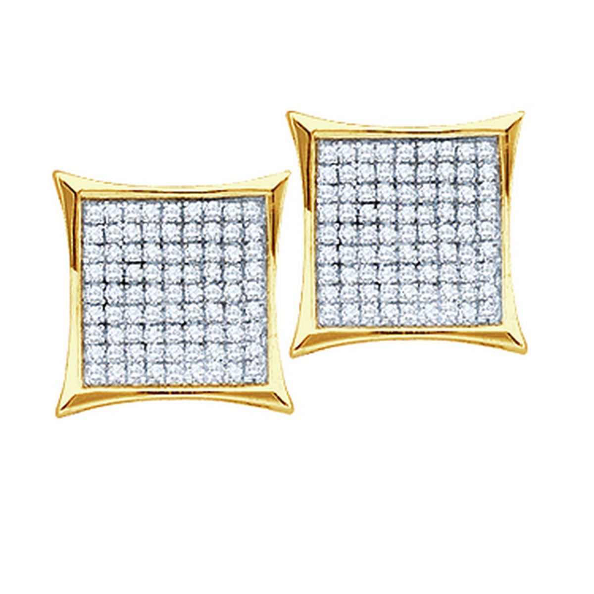 REF-25W2H ---- 0.45 CTW Natural Diamond Square Cluster Screwback Earrings 10K Yellow Gold - SKU: GD54303