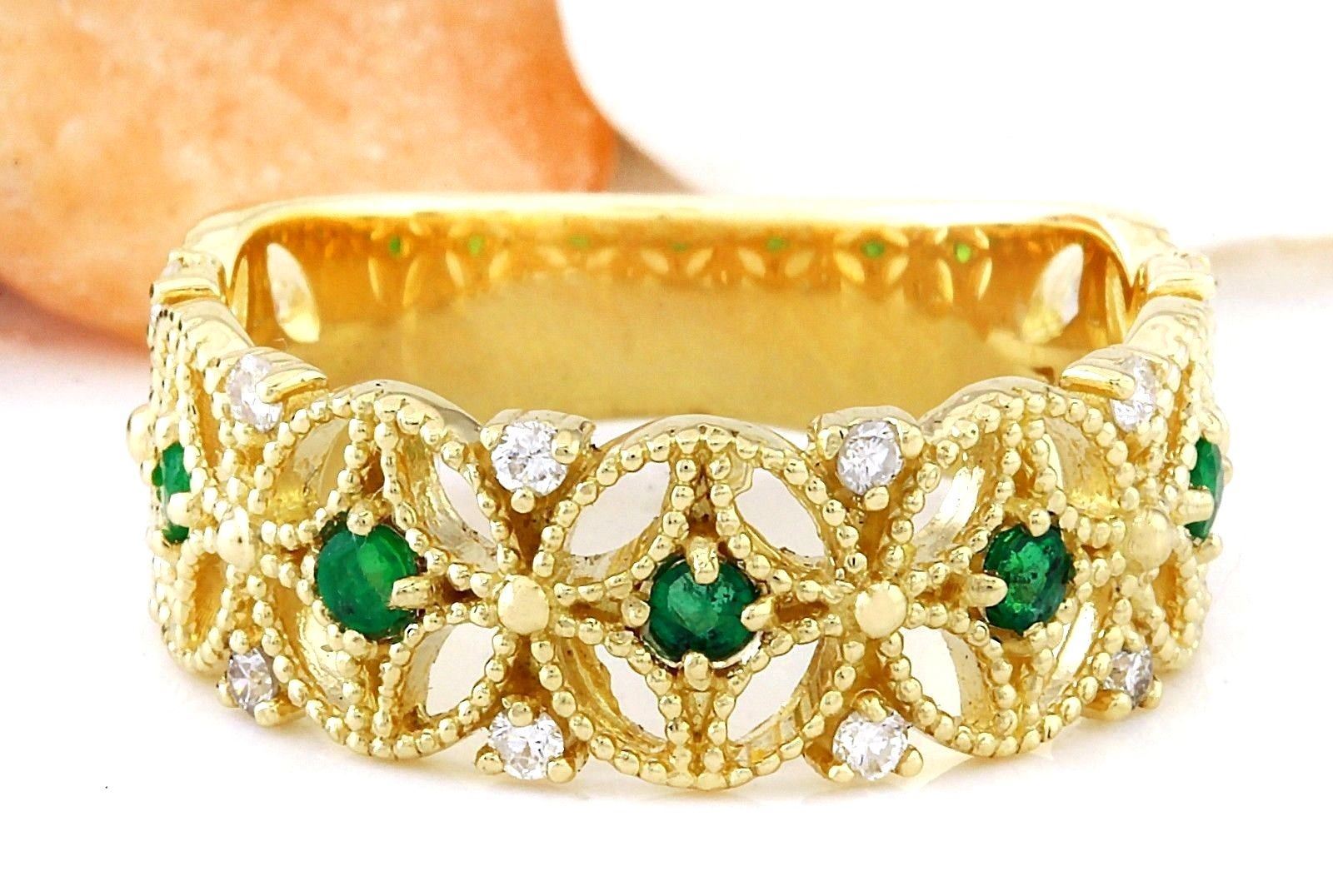 0.45 Carat Natural Emerald 18K Solid Yellow Gold Diamond Ring