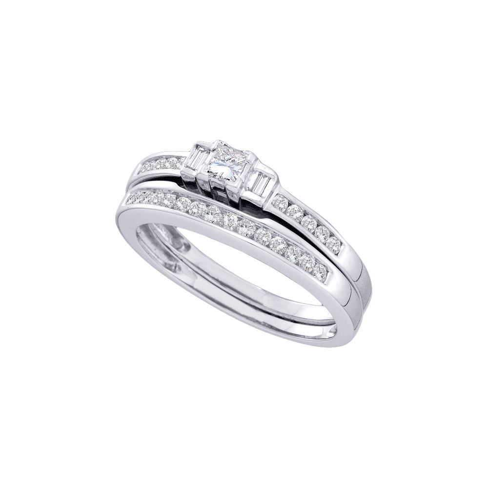 REF-57Y2X- SKU: GD49640 ---- 0.45 CTW Princess Diamond 3-Stone Bridal Engagement Ring 14KT White Gold