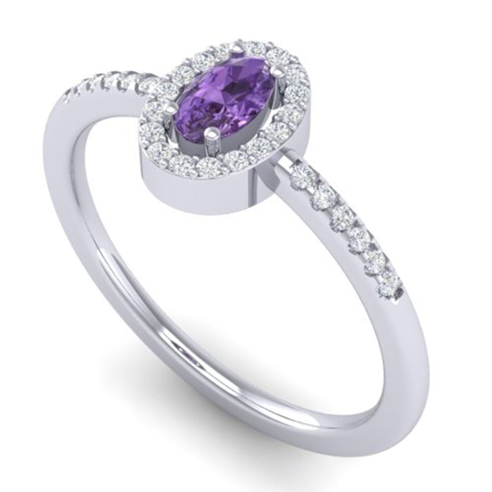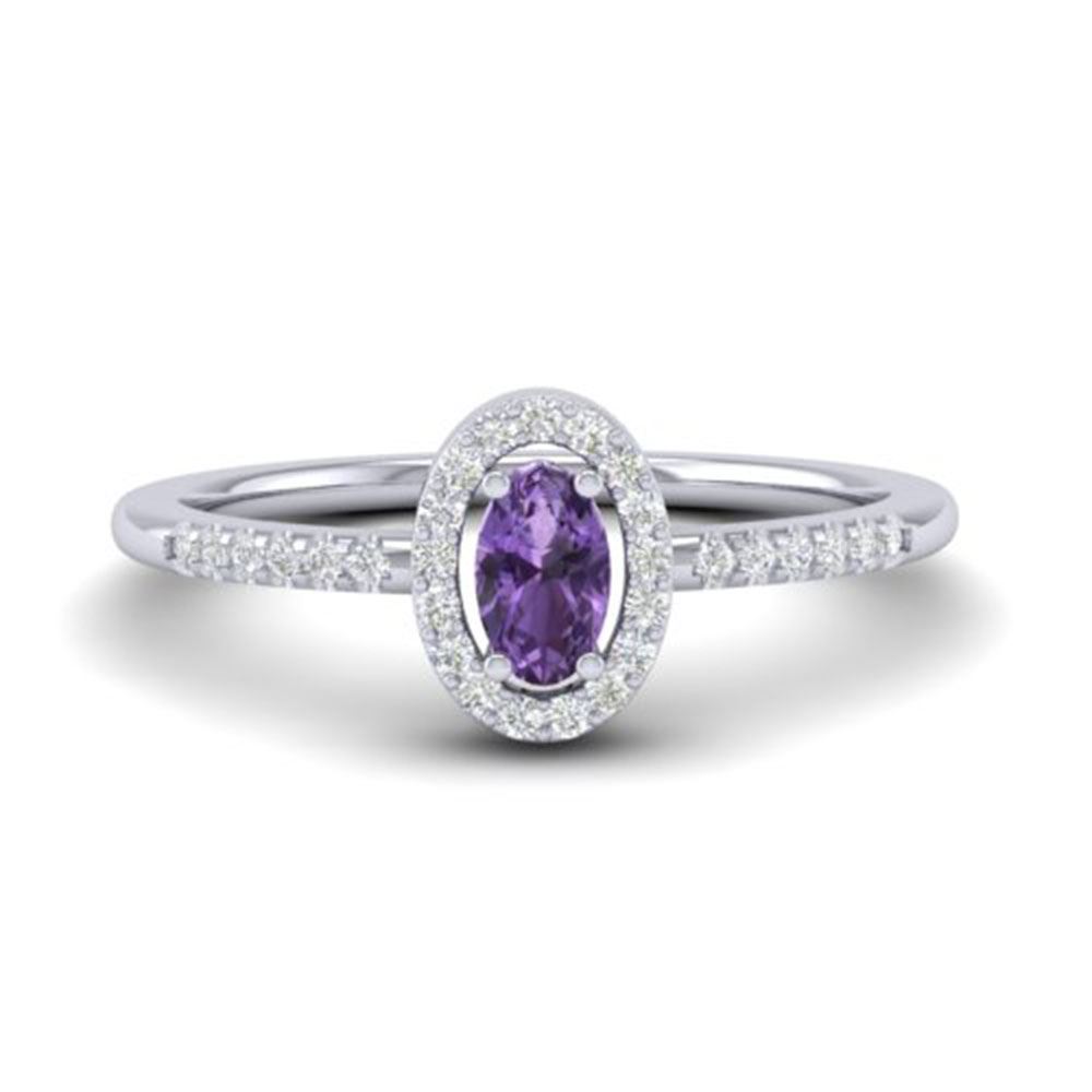 REF-22H8R - SKU: 21378 ---- 0.45 ctw Amethyst & Micro Pave VS/SI Diamond Ring 18k White Gold