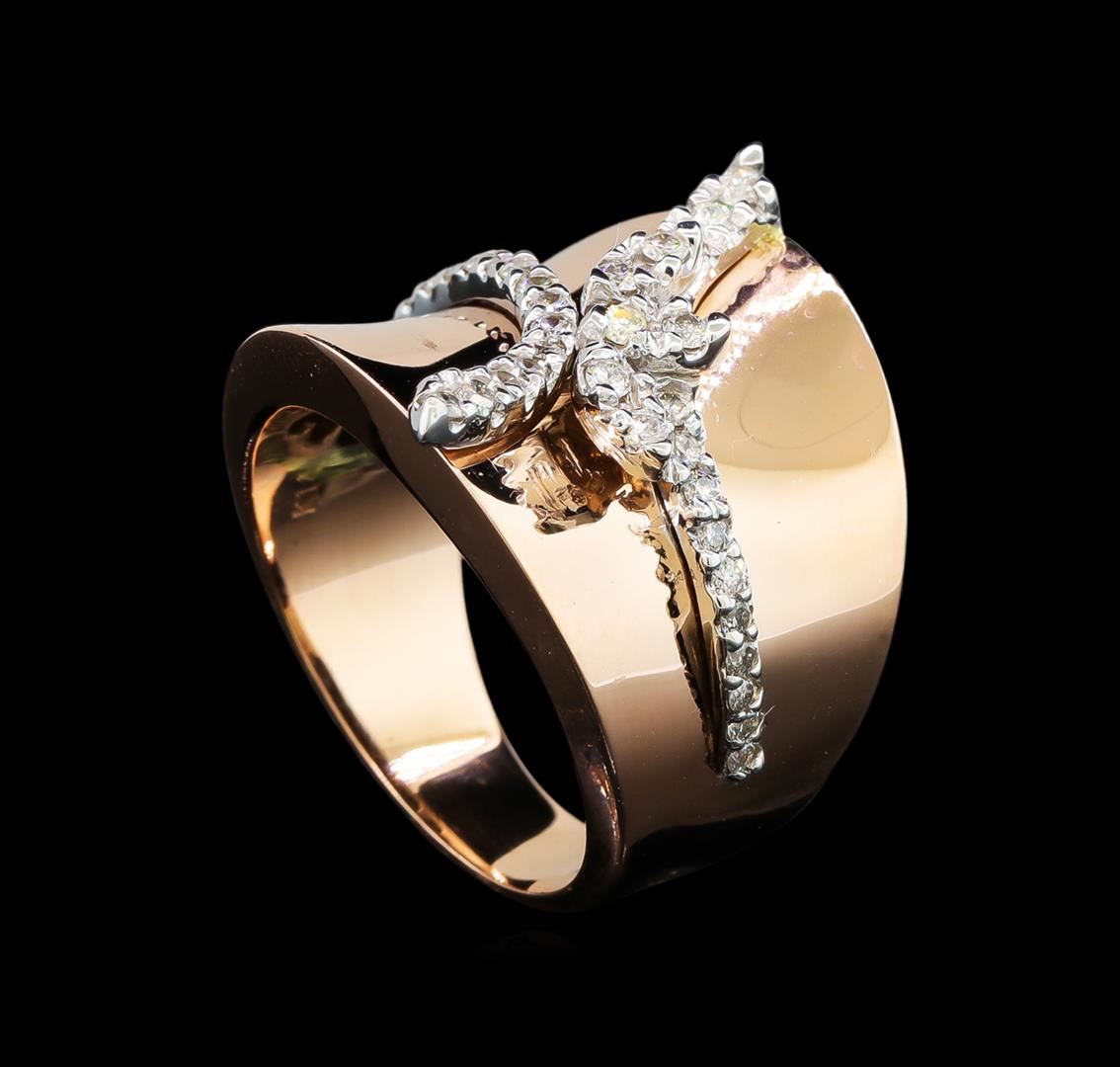 One Ring : 14KT rose and white gold weighing 10.38gm containing diamonds with a total weight of 0.45ctw.
