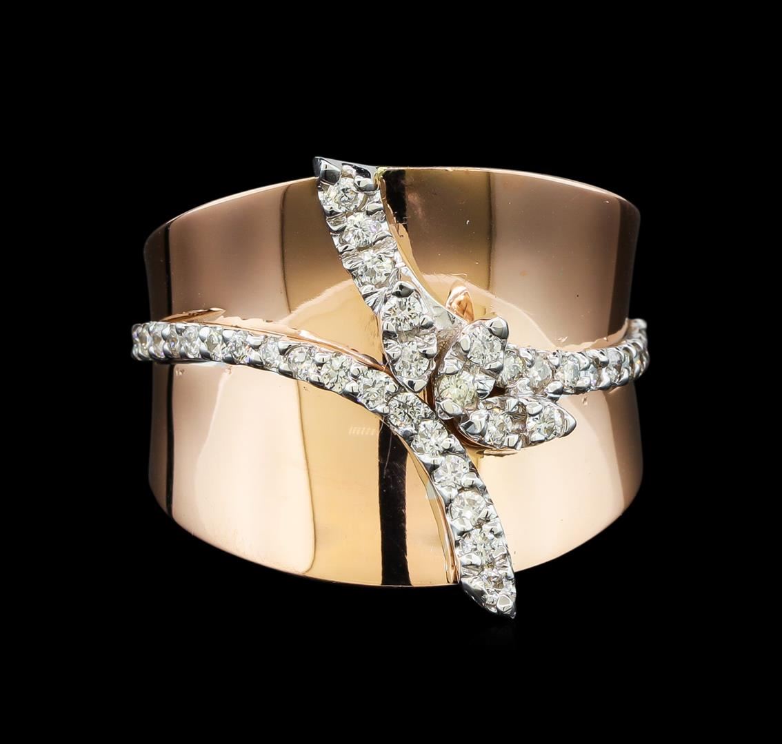 One Ring : 14KT rose and white gold weighing 10.38gm containing diamonds with a total weight of 0.45ctw.