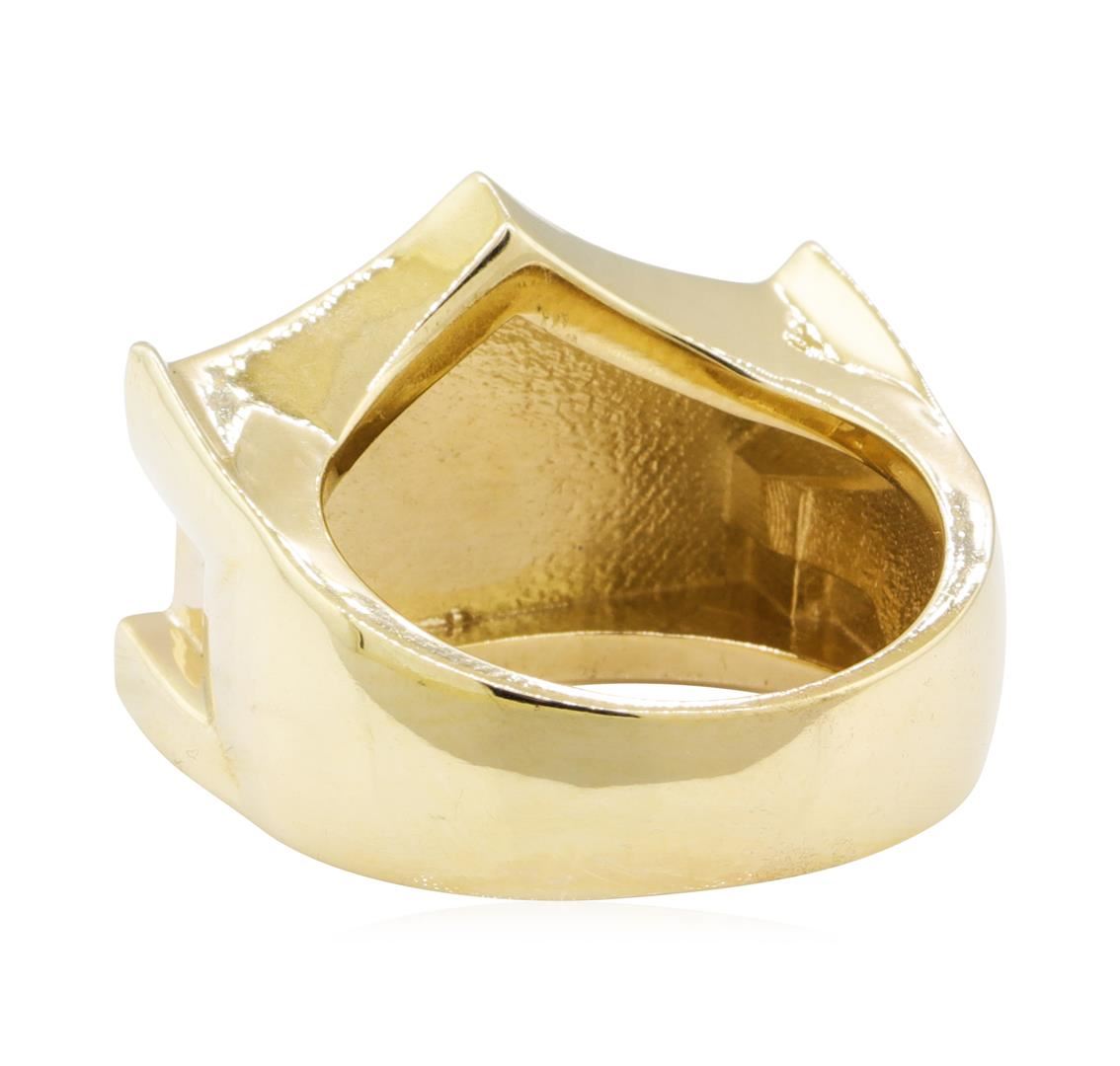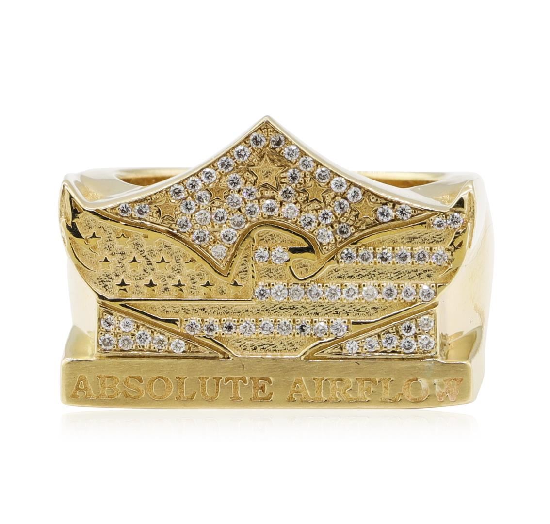 One ring featuring: 14KT yellow gold weighing 17.2 grams containing diamonds weighing 0.45ctw. The ring has an eagle and shield motif with the words "Absolute Airflow"