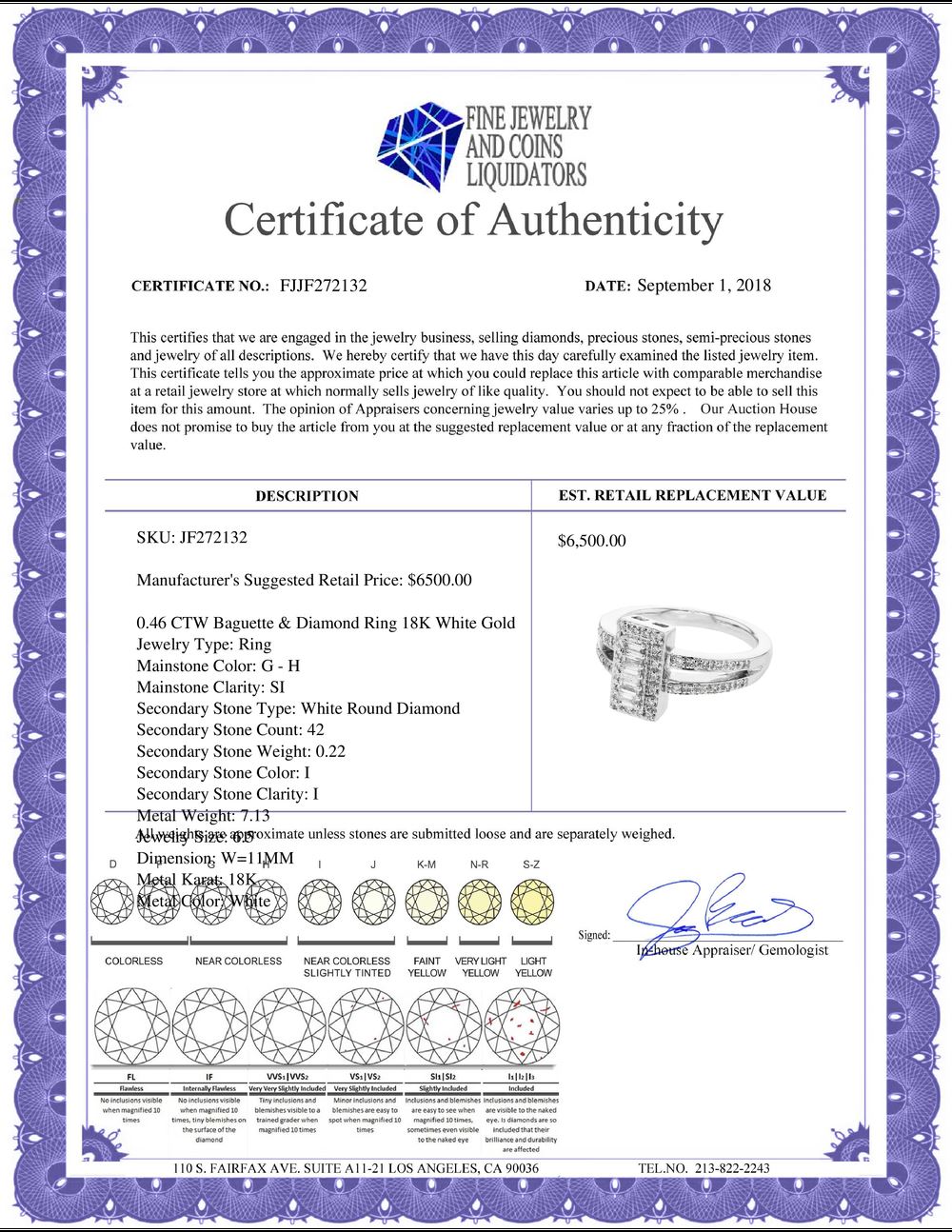 REF-86K2W - JF272132 ---- 0.46 CTW Baguette & White Round Diamond Ring 18K White Gold