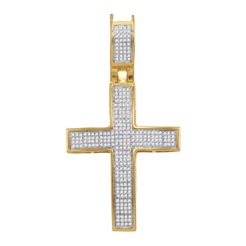REF-44K9W- SKU: GD67654 ---- 0.46 CTW Mens Diamond Symmetrical Cross Charm Pendant 10KT Yellow Gold