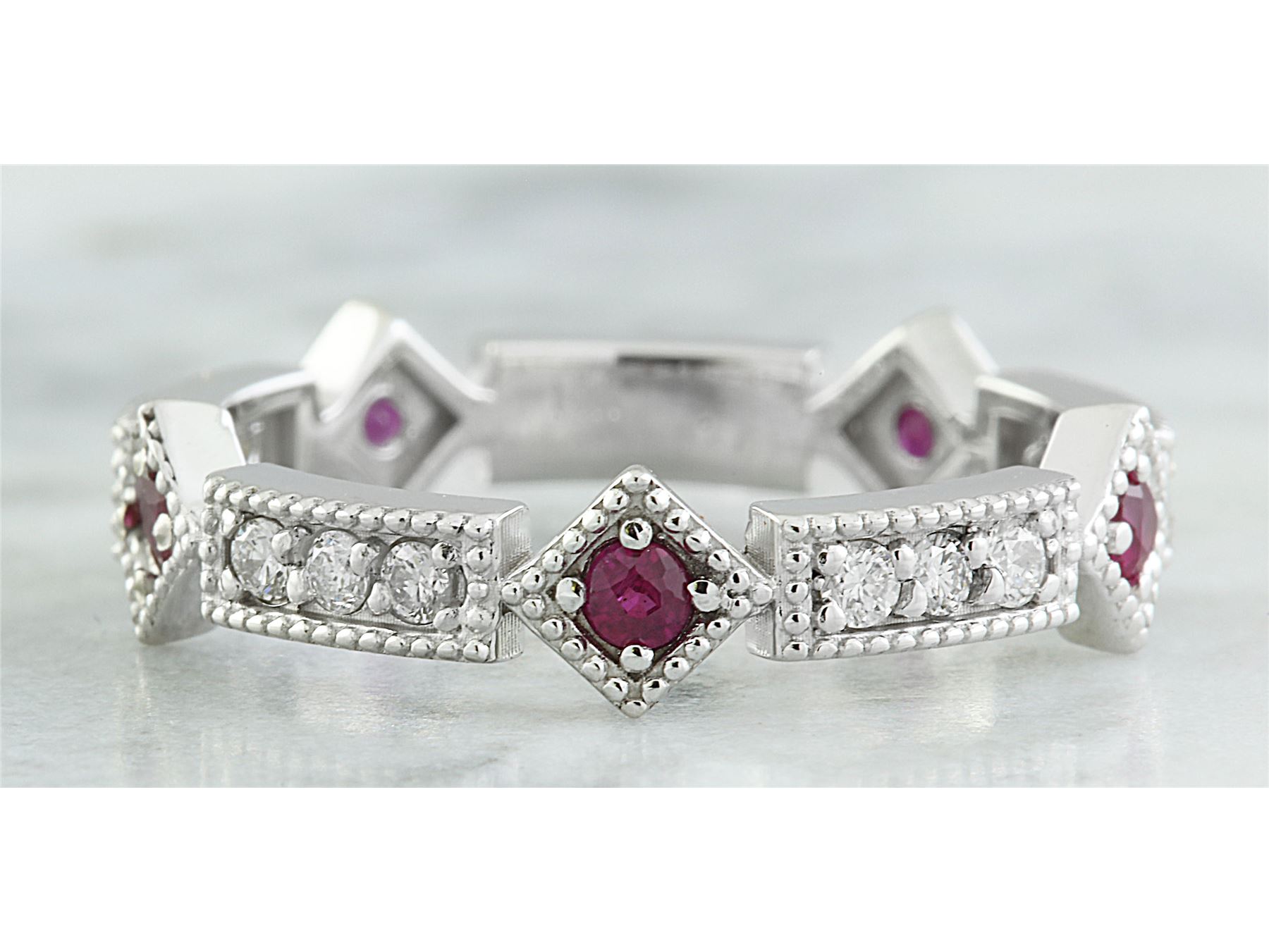 0.46 CTW Ruby 18K White Gold Diamond Ring
