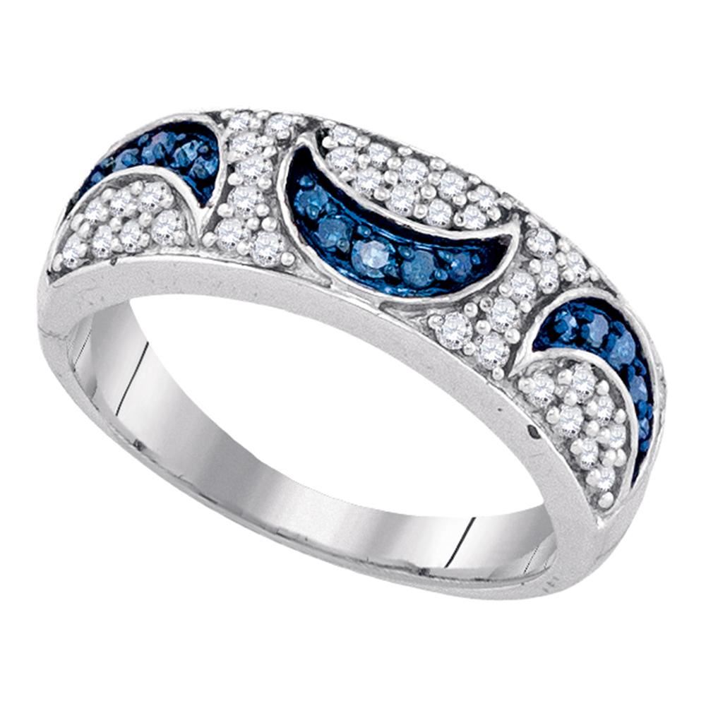 REF-32W9K- SKU: GD85666 ---- 0.47 CTW Blue Color Diamond Moon Ring 10KT White Gold