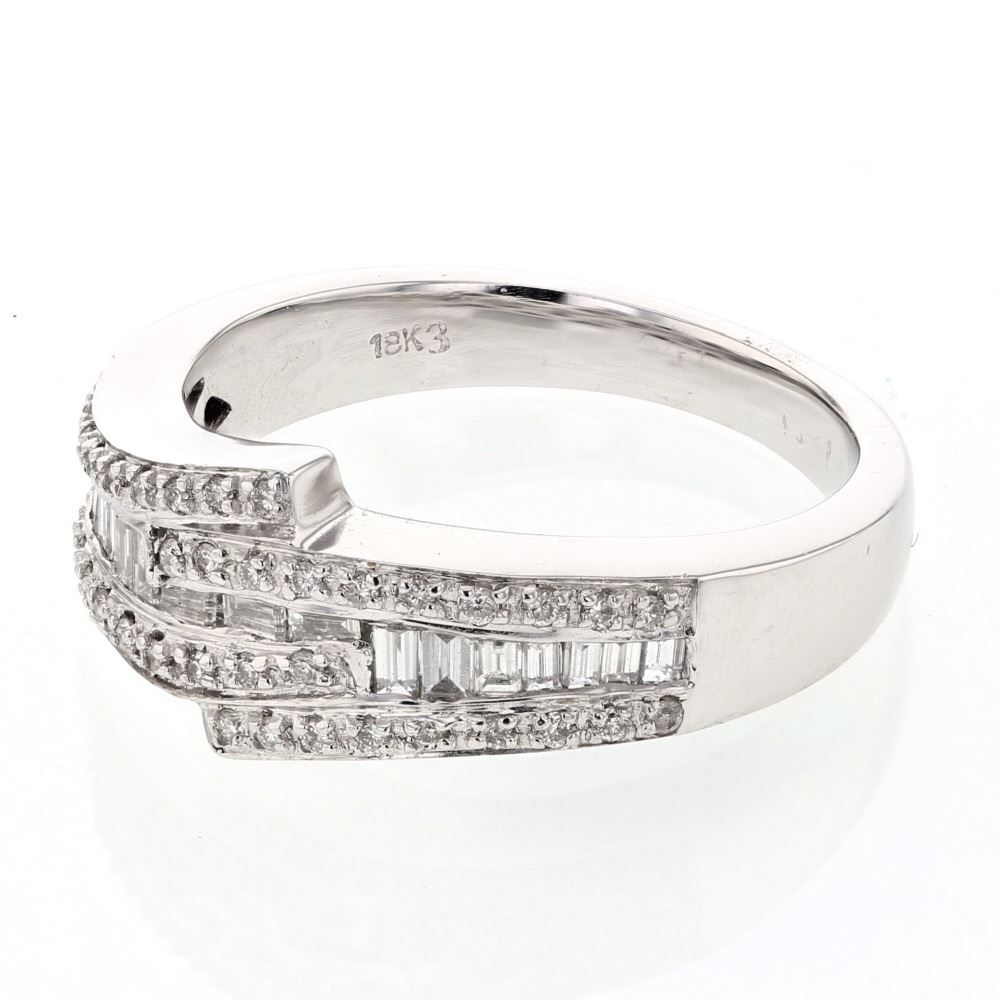 REF-75R7K - JF222638 ---- 0.47 CTW Baguette & White Round Diamond Ring 18K White Gold