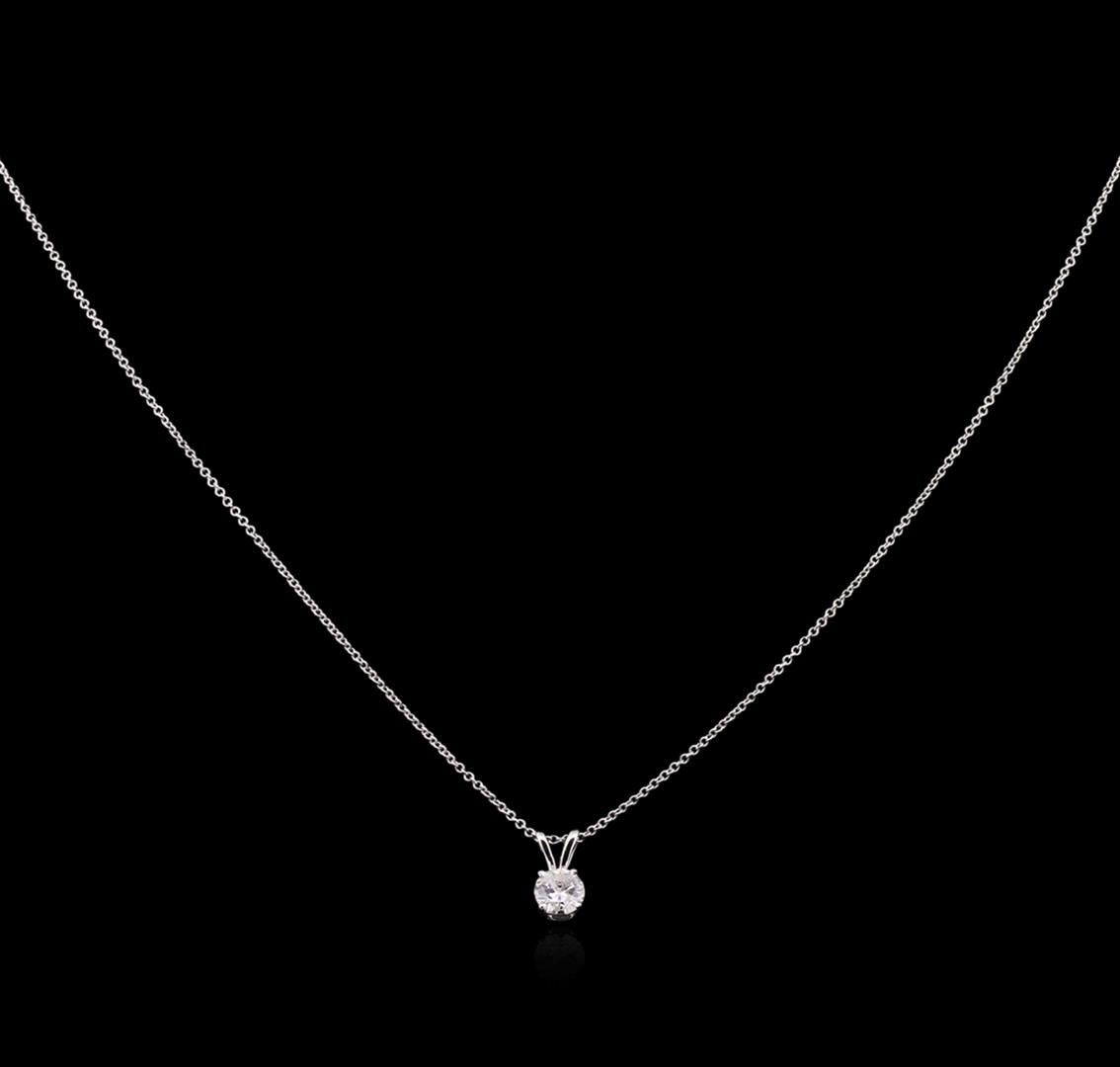 One solitaire pendant with chain featuring: 14KT white gold weighing 1.50 grams containing one diamond with a total weight of 0.47ct.