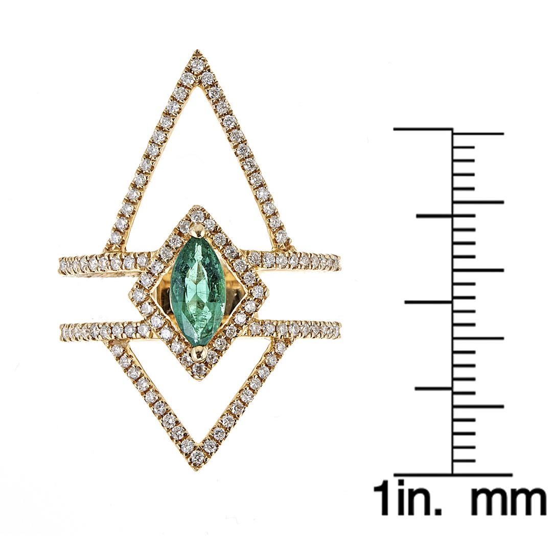 One ring featuring: 18KT yellow gold weighing 4.38 grams containing one brilliant cut emerald with a total weight of 0.47 ct and diamonds weighing a total of 0.38 ctw.