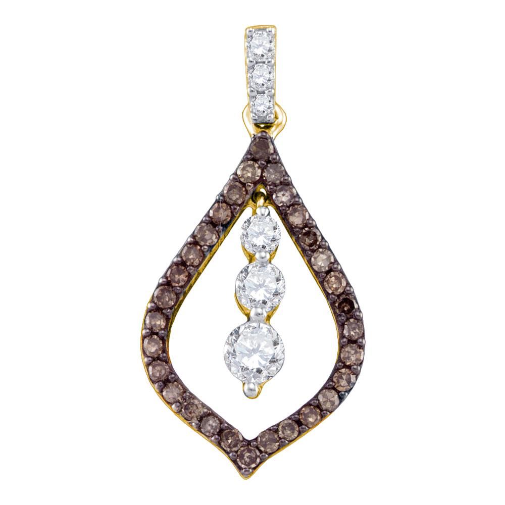 REF-34H4M- SKU: GD74440 ---- 0.48 CTW Cognac-brown Color Diamond Teardrop Journey Pendant 10KT Yellow Gold